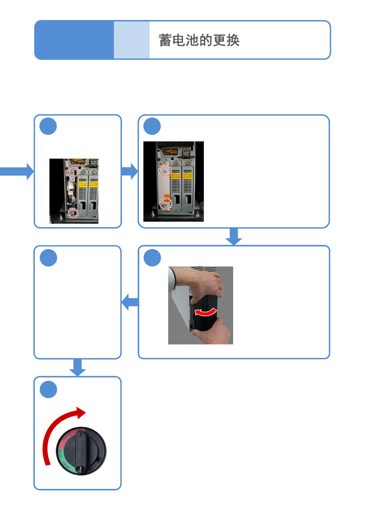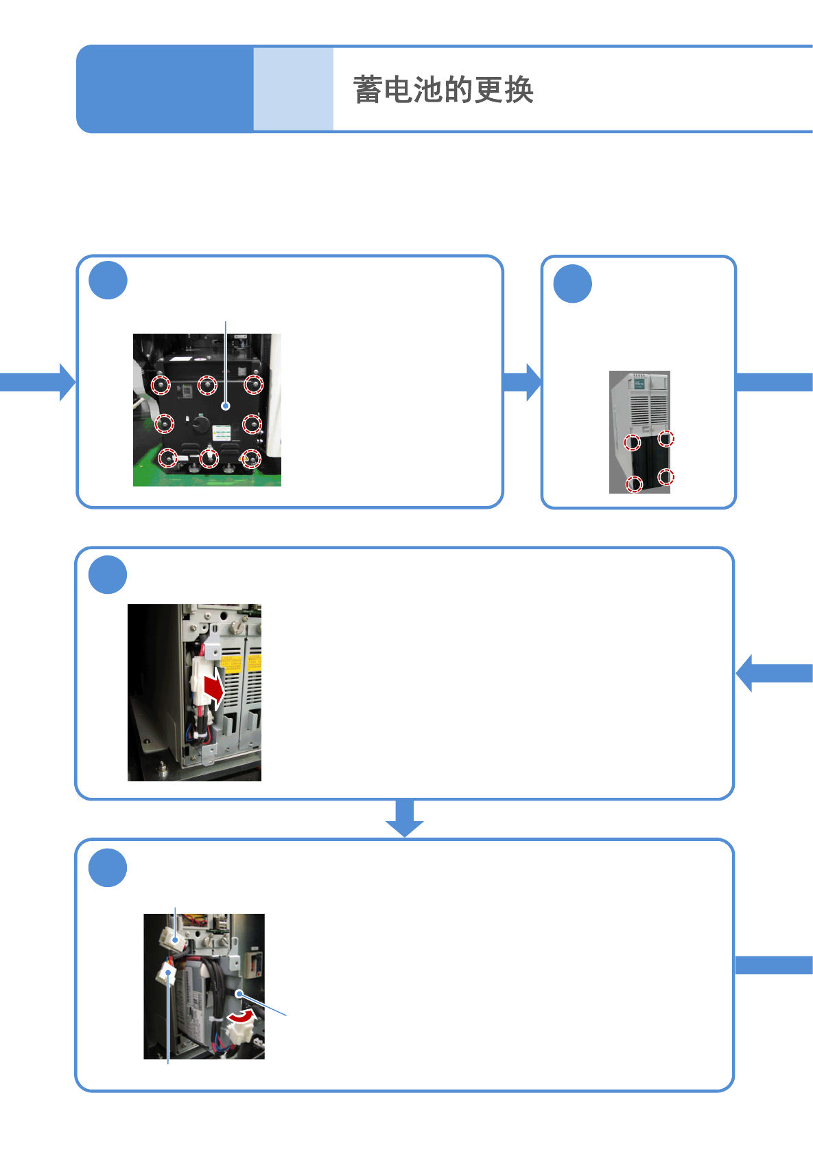 ●新的蓄电池按照 的顺序推到原来拉出来的位置,然后连接电缆和