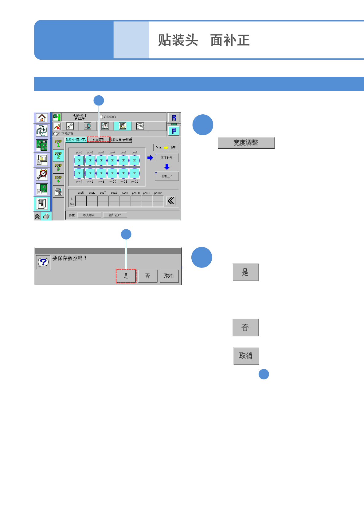 NPM-W2 EJM7DC-MB-13M-00 21 确认是否已正常结束,选择进行 面补正 Z 的另一个工作台, 重复 ~ 的操作。 21 19 2 20 13-4 -4 17 18 关闭安全盖 + 确认提示 ■取消时 ( 仍然是 的画面 ) 13 19   伺服开关置于 ON ( 开始面补正 Z 的校准 ) 20 确认提示 20 ( 将开始面补正 Z 的校准 ) +