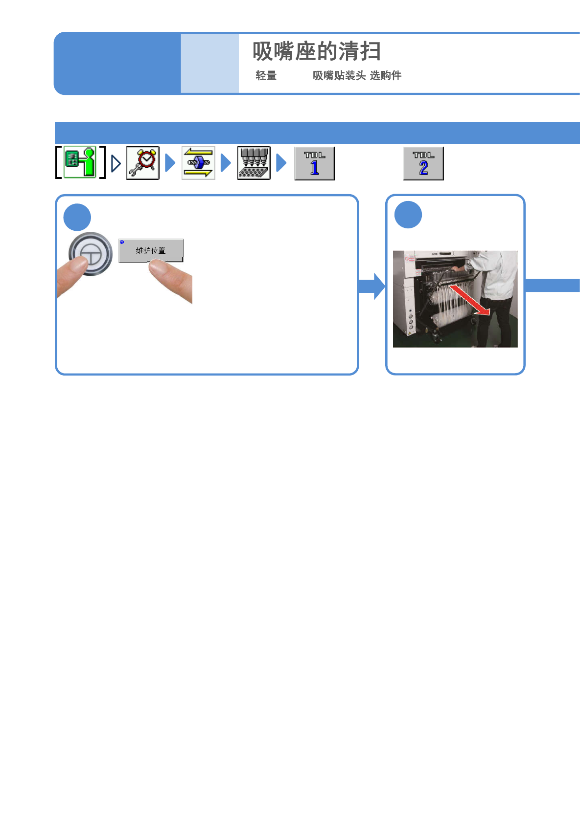 NPM-W2 EJM7DC-MB-07M-00 顺序 5 7-1 -4 4 拔出吸嘴 吸嘴座 吸嘴 ●请笔直卸下。如果倾斜,夹具夹扣 可能会破损。 注意 3 卸下吸嘴座 ●按住吸嘴往上推,从 下往上看,按顺时针方向旋 转。 ●请注意不要让吸嘴缓 冲用弹簧弹出来。 ●因夹具夹扣压紧用弹 簧容易变形,请勿用手指硬 压。 ●按照相同步骤,在贴 装头卸下所有吸嘴座。 ■有吸嘴时 ●使用吸嘴座轴清扫工具 ( 选购件 ) 。 ●使 12 吸嘴清扫侧…
