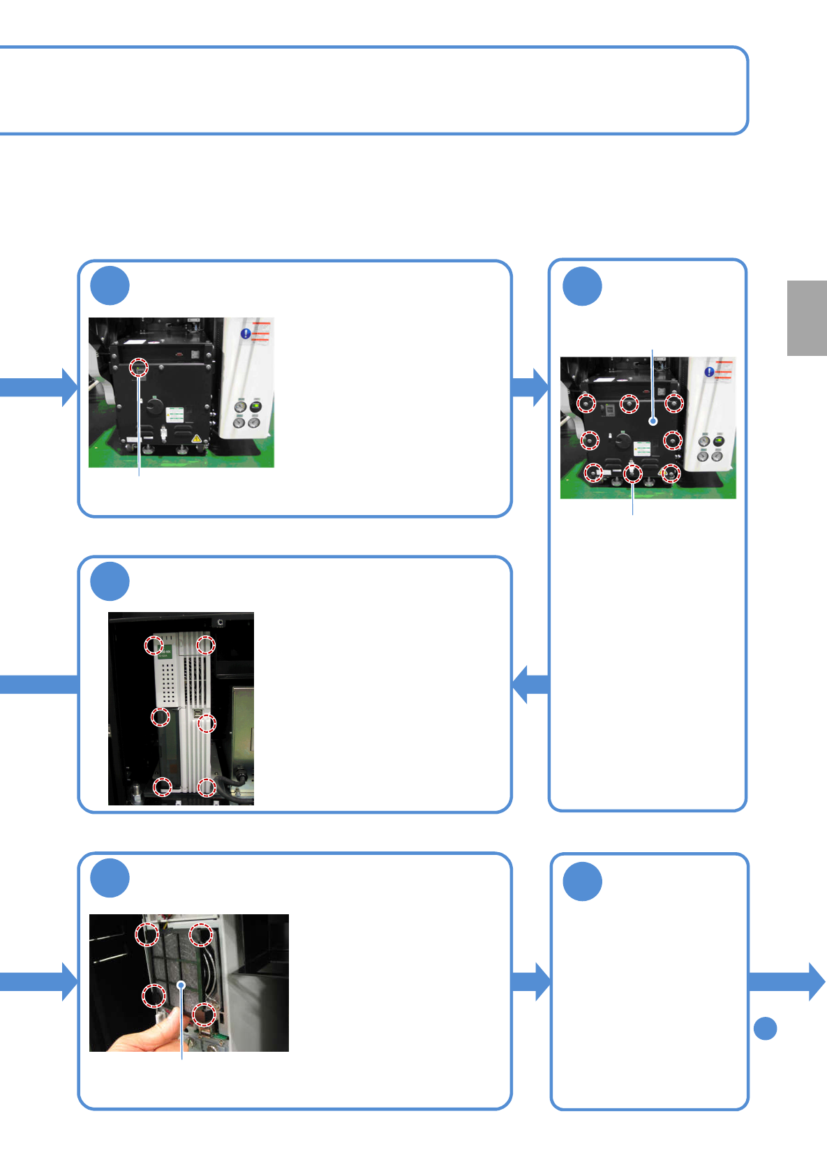 NPM-W2 EJM7DC-MB-08M-00 3 4 确认 UPS 是否停止 ●请确认检查 BOX 内的 FA 电脑 的 UPS 是否停止。 ●请确认 FA 电脑的电源灯是否灭 灯。 即使仍旧亮灯,关闭设备 主体的 电源后,经过大约 1 分钟左右, UPS 就会停止,电源灯 即会熄灯。 电源灯 卸下检查 BOX 的 前侧盖子 ●使用六角扳手,打开检查 BOX 的前侧盖子。 ●前侧盖子被八个固定螺丝 固定着。 固定螺丝 前侧盖子 5 卸…
