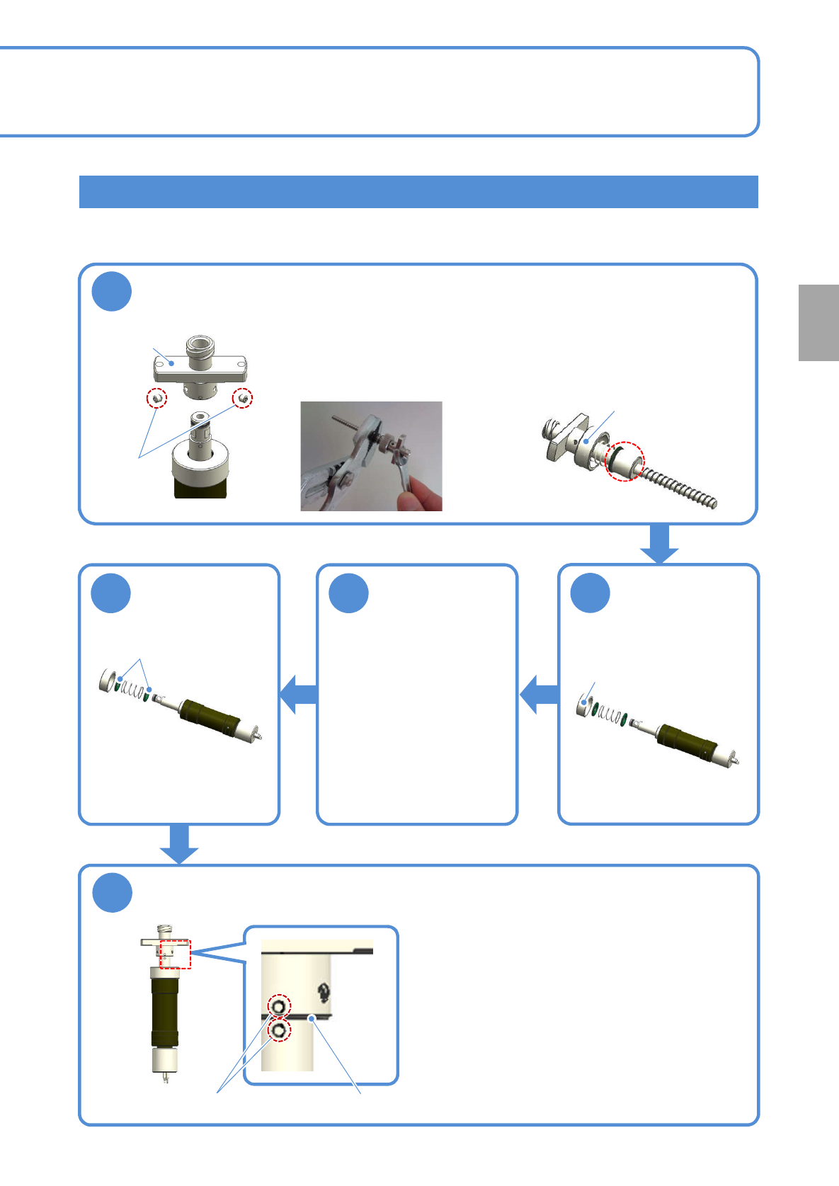 NPM-W2 EJM7DC-MB-08M-00 对圈的更换方法进行说 明。 使用工具 : 六角扳手 所需时间 :10 分钟 ●消耗元件请按照更换 周期予以更换。 ●请事先把螺旋单元卸下来。 ( → P.4-2-5) ( ( )) 维修保养篇 8 - 4 8-4 -1 1 2 下圈的更换 拧松上盖 ( 向右旋转 ) ,从螺旋单元上取下螺旋轴和 下圈 上盖 下圈 更换下圈 ●圈没有正反面。 3 组装复原螺旋单元
