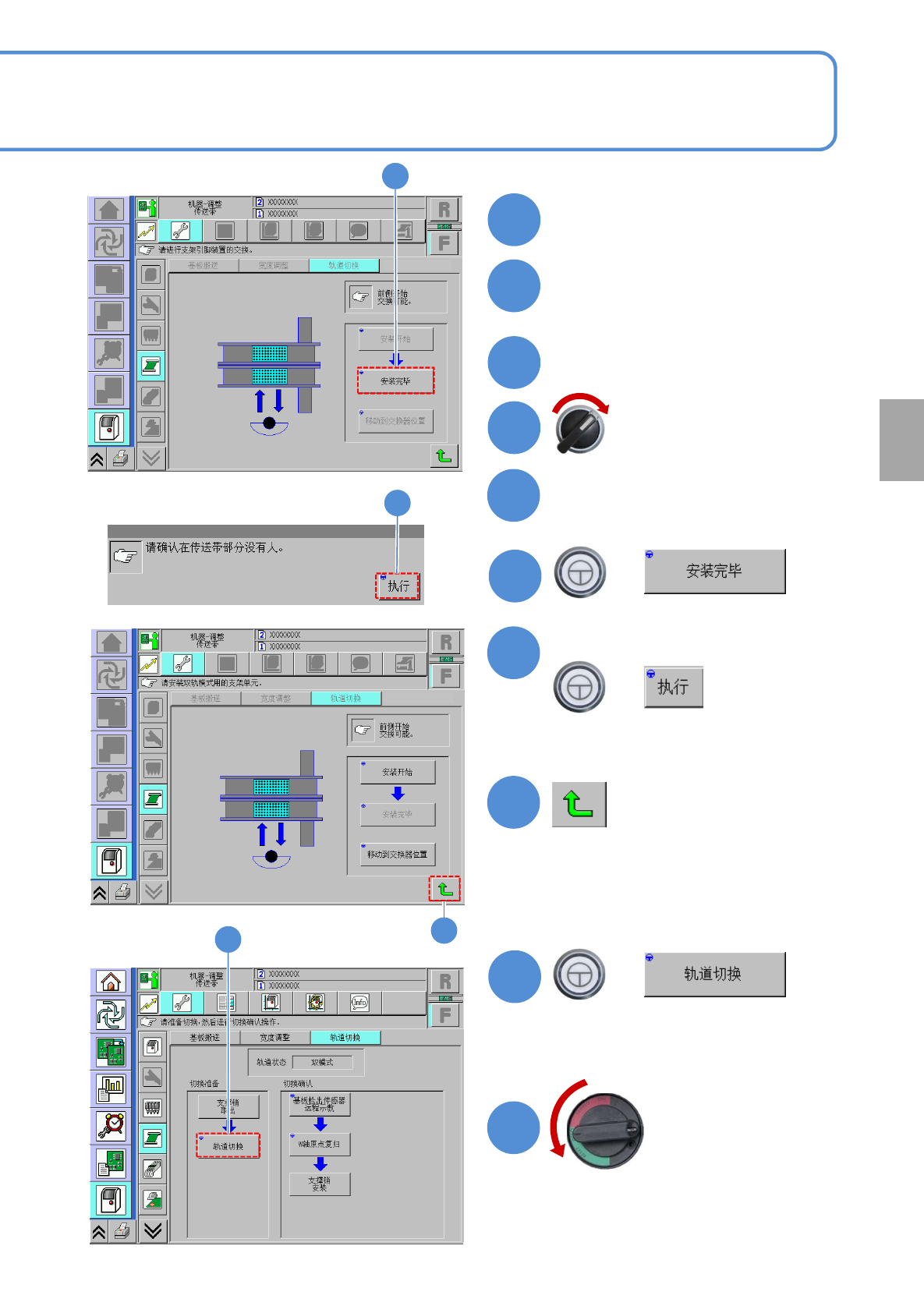 NPM-W2 EJM7DC-MB-11M-00 1 1-3-2 -1 3 5 + 6 4 + 7 + 8 确认提示 3 5 7 4 8 6 模式的 切换 1 维修保养篇 1 1 - 3 - 2 在这里对切换完模式后 ,在单轨模式下进行确认的 方法进行说明。 1 2 ON 将主电源开关置于 ON