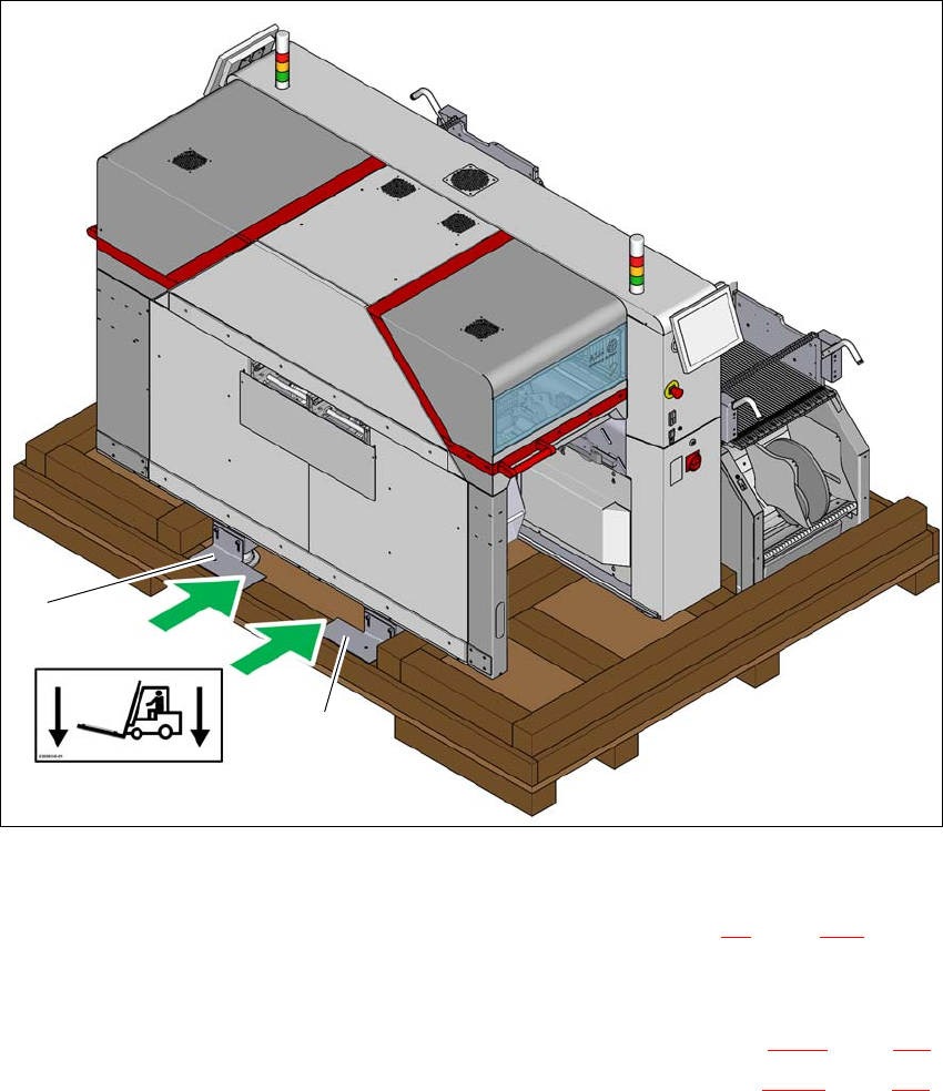 4 Setting up and commissioning User manual SIPLACE TX V2 4.2 Configuration when delivered From software version 711.1 04/2018 162 4.2.6 Lif ting the placement machine off the pallet 4 Fig. 4.2 - 3 Contact points for tran…