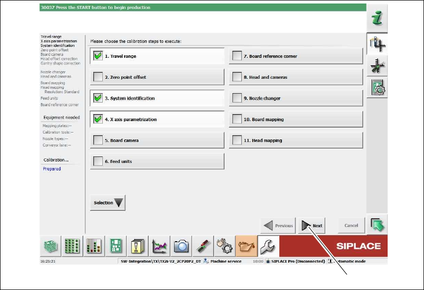 4 Setting up and commissioning User manual SIPLACE TX V2 4.7 Commissioning the placement machine Fr om software version 711.1 04/2018 196 4.7.2.1 Performing initial calibrati on Click on "Service T ools" in t…