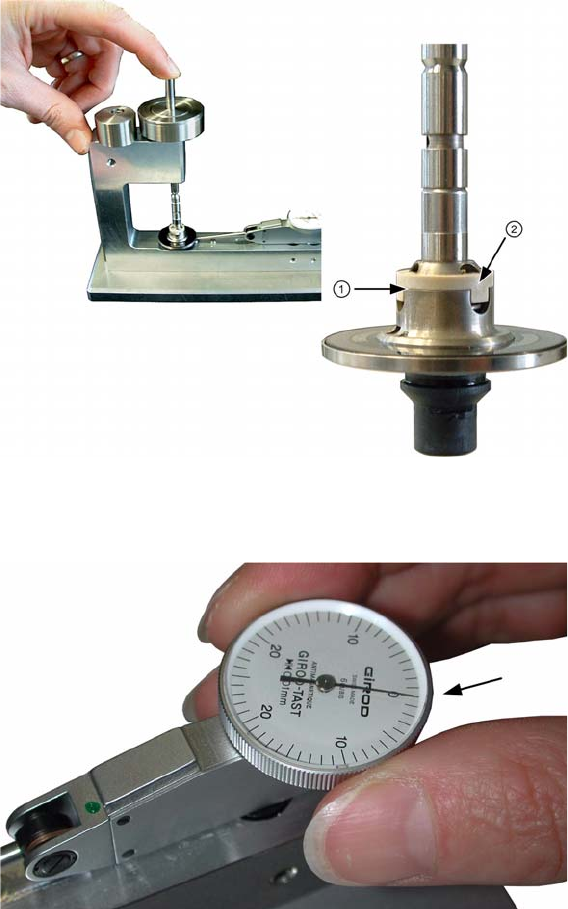 Bedienungsanleitung Veri fizierung von Pinolen Prüfen der Anfangseinfederkraft Sleeve Verification Ve rifizierung von Pinolen 13 ▪ Drehen Sie den Exzenter und führen Sie das Grundgewicht (1,4N) mit der Spitze nach unte n…