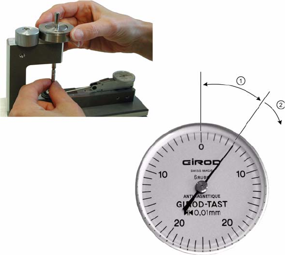 – Ist die Auslenkung mehr als 5 Teilstriche, ist die Pinole unter 1.6N und darf somit nicht mehr ver-
