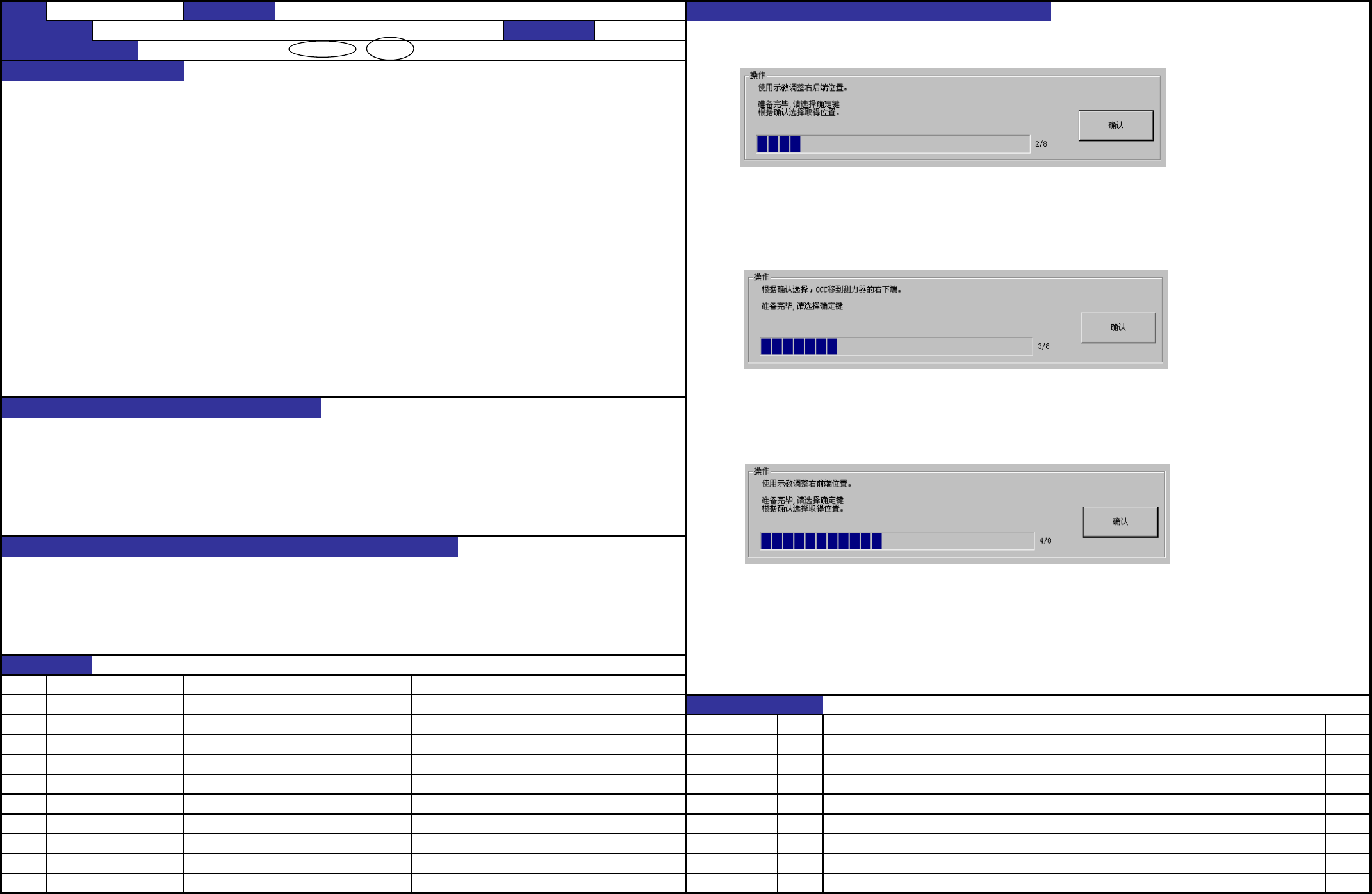 QA表 机种 <操作 · 2/8(装配位置)> 依照测 力 传 感器 装配位置高度的参数取得1 2. 请利用示教调整右后端位置。 准备完成后请选择确认。 <操作 · 3/8(装配位置)> 3. 通过选择确认,OCC会移动到测 力 传 感器 的右下端。 准备完成后请选择确认。 依照测 力 传 感器 装配位置高度的参数取得1 <操作 · 4/8(装配位置)> 依照测 力 传 感器 装配位置高度的参数取得1…