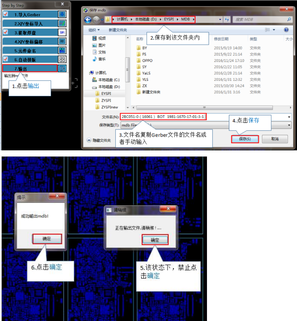 8. 点击输出,保存到 D 盘 EYSPI 文件夹 MDB 文件夹中,文件名复制 Gerber 文