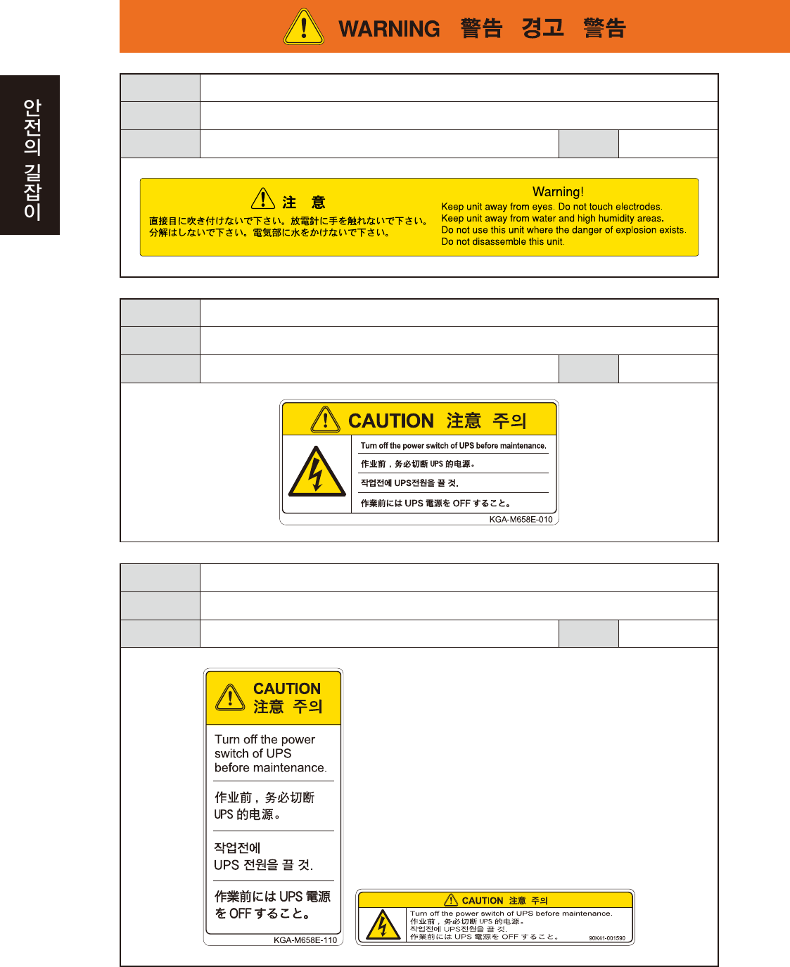 위험의 회피 작업을 실행할 경우는 , UPS 장치의 스위치를 OFF 한 후에 실시할 것 .