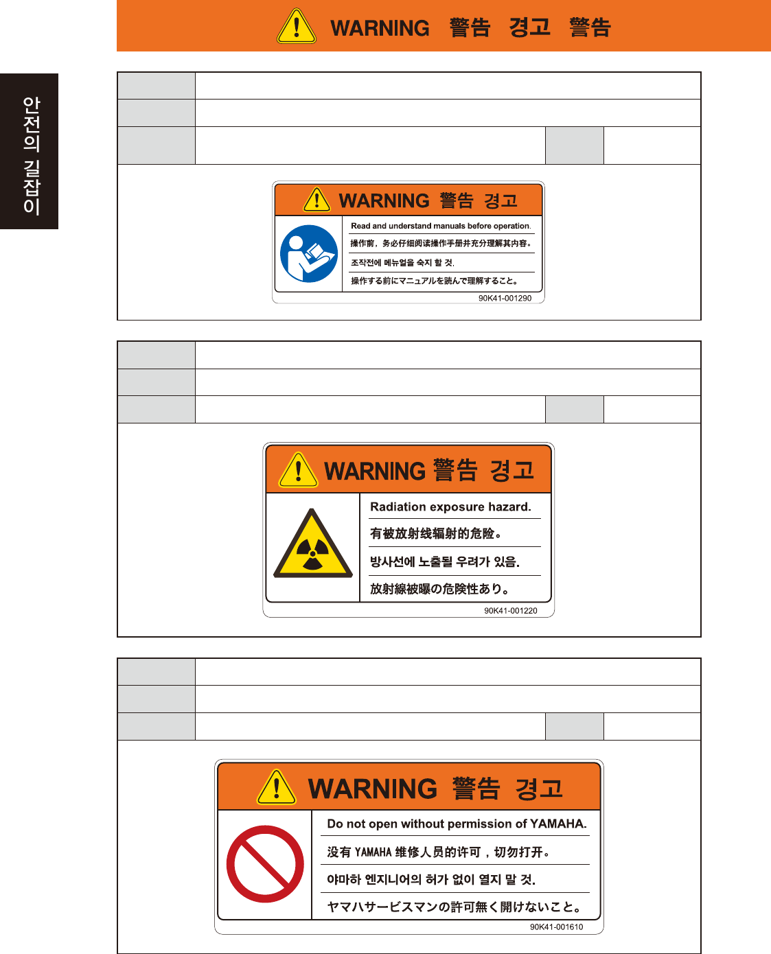 위험의 회피 야마하 엔지니어의 허가 없이 열지 말 것 .