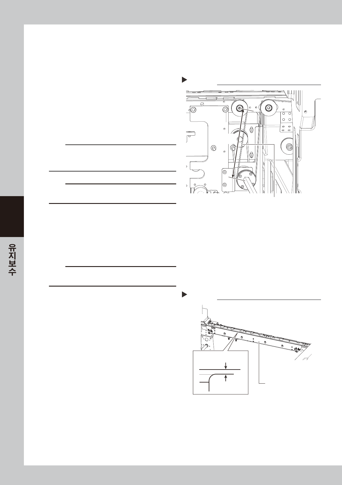 4-28 4 6 컨베이어에 서 벨 트를 분리합 니다 . 7 반 송 부 를 청 소합니다 . 컨베 이어 프레 임 과 기 판가이 드의 틈새 를 얇은 브 러시 , 또는 닦 기 용 와이퍼 로 청 소 하 여 주십시 오 . 8 새로 운 벨 트를 장 착 합니다 . 1 . 새 벨트 를 풀리 에 걸 면서 벨 트 를 임 시 장착하 여 주십시 오 . 2. 샤프트 를 풀리 에 접 속 시켜 볼트 를 끼 워 주십시 오…
