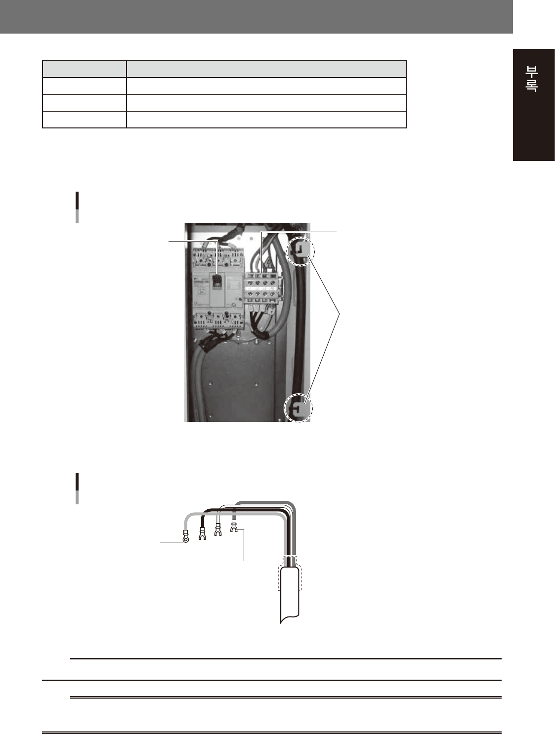전원 케이블에는 , 도체 단면적이 3.3 ㎟ (AWG12) 이상의 것을 사용하여 주십시오 .