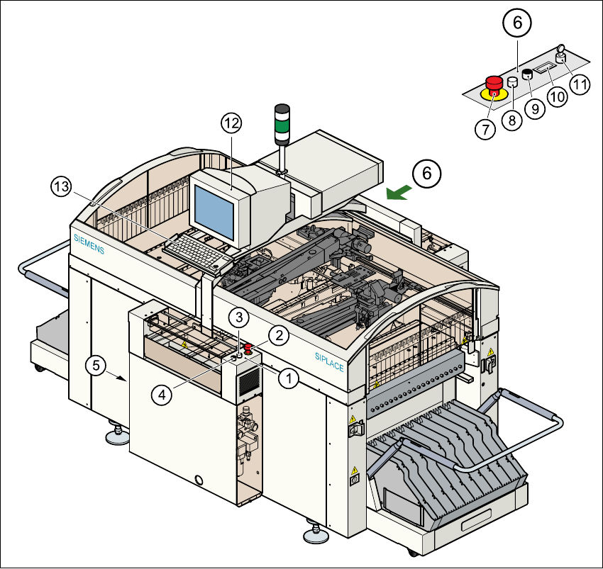 (7) NOT-HALT-Taster (8) Starttaster (weiß)