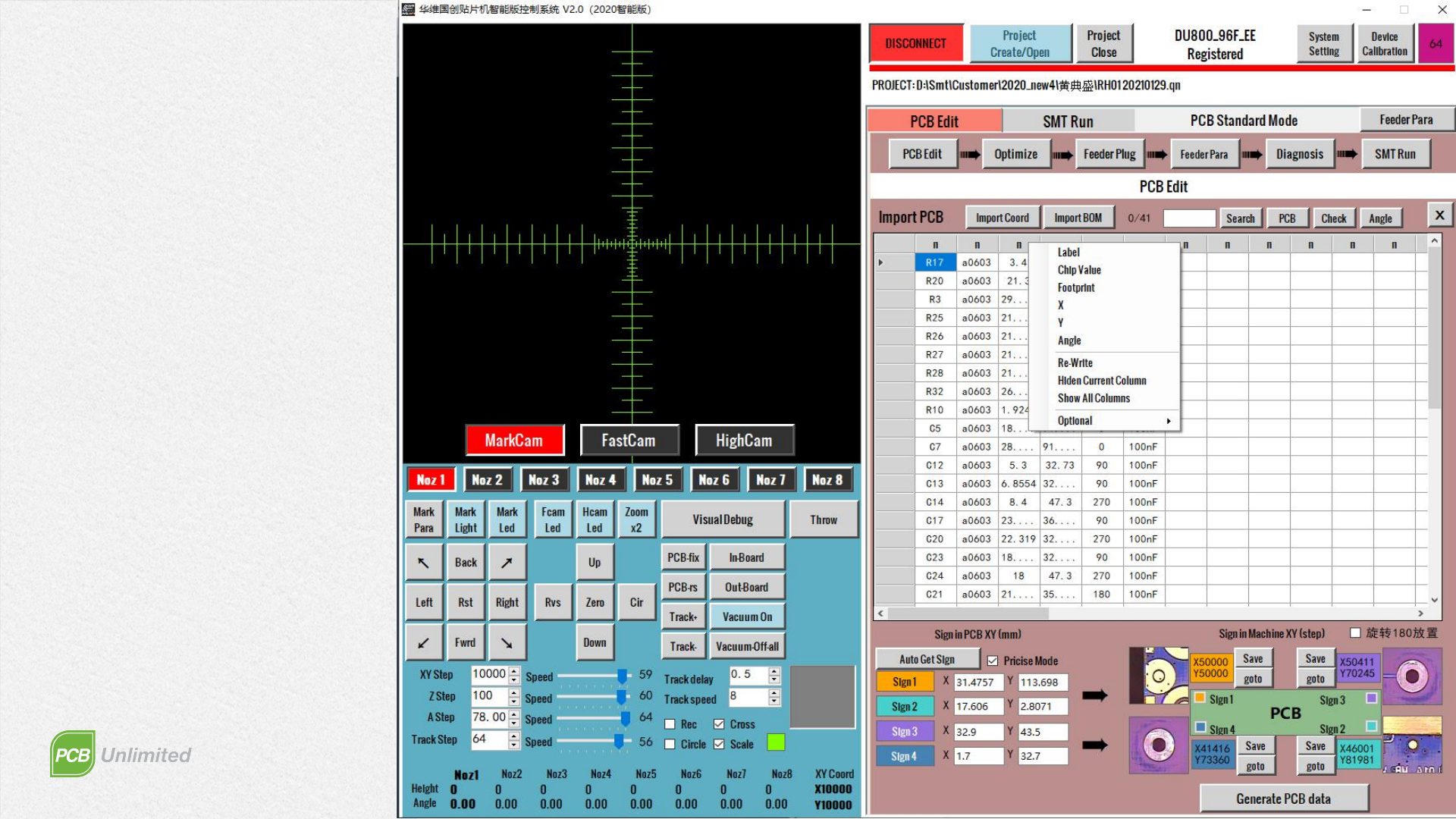 Import the .CSV file exported from PCB files, generate project coordinates through four corner coordinate positioning, and automatic-