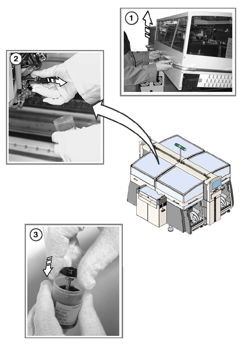 预防性维护 HF 系列 维护 2004 年 3 月中文版 6 每周维护 27 清空 8 mm S 供料器上的元件抽屉或平板 6 : 拔出 8 mm S 供料器,并将其提 升移出元件料台。 6 a 用刷子或吸尘器清除转换料台上 的松散元件。 s 清空 2x8mm S 传送导轨 (如果有)的元件抽屉。 d 打开 3x8 mm S 传送导轨 (如果存在)的平板,并清 除元件。 f 擦拭供料器底座,清除所有脏物 。 6 g 剪断供料器中突出来的…