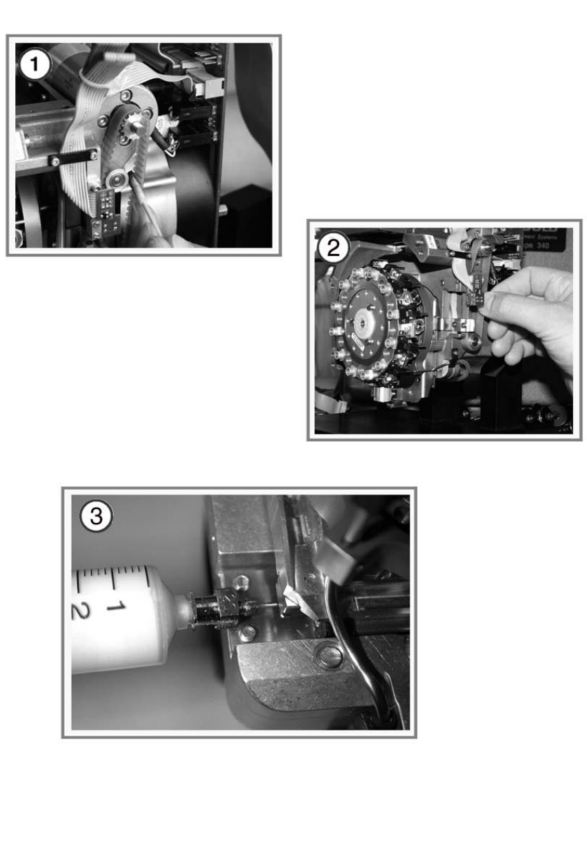 : 用浸有无水乙醇的棉签或无纺布清洁滚轮、齿型轮和齿型皮带。