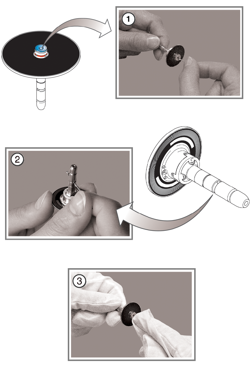 d 用干无纺布清洁段位器光栅盘虹吸盘。