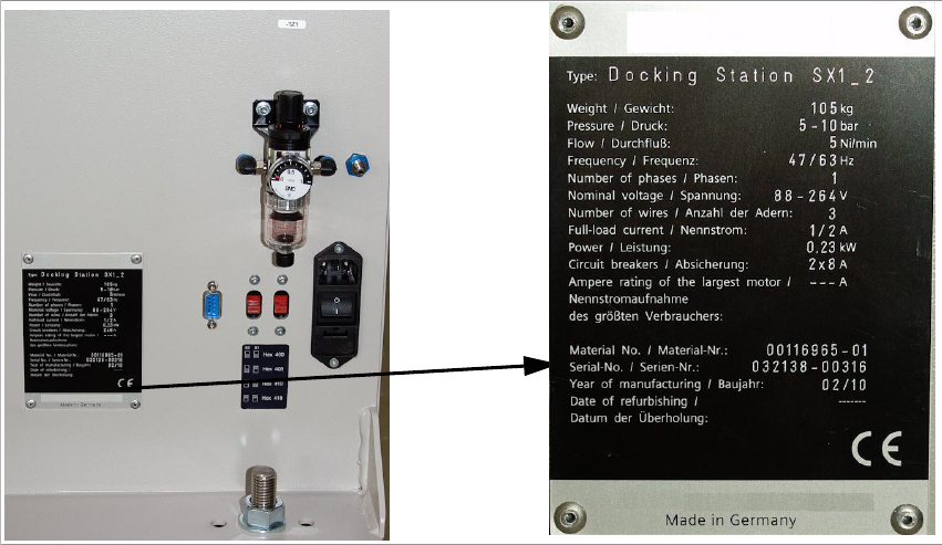 1.6 Serial number of the docking station Operating Manual