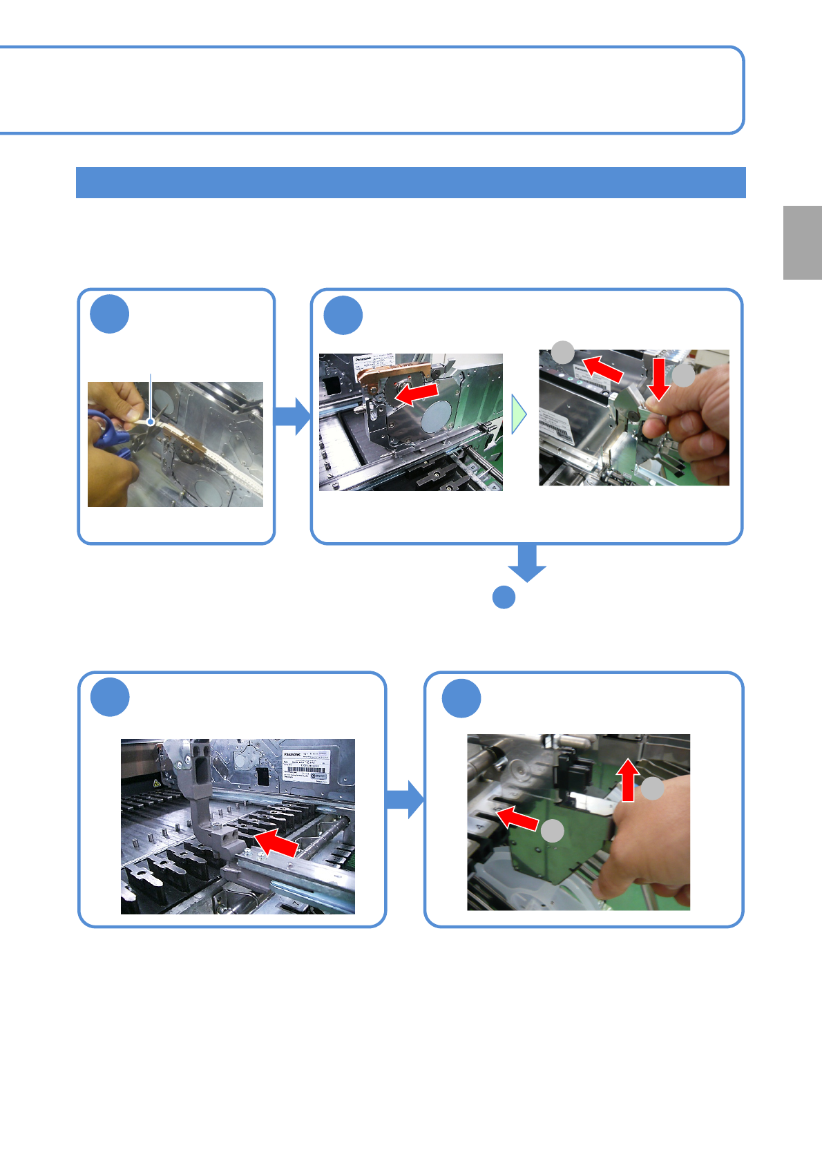 ●Do not put the tape feeder back in the middle of removal. Doing so may cause the