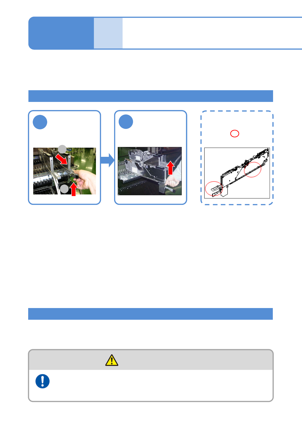 ●Do not put the tape feeder back in the middle of removal. Doing so may cause the