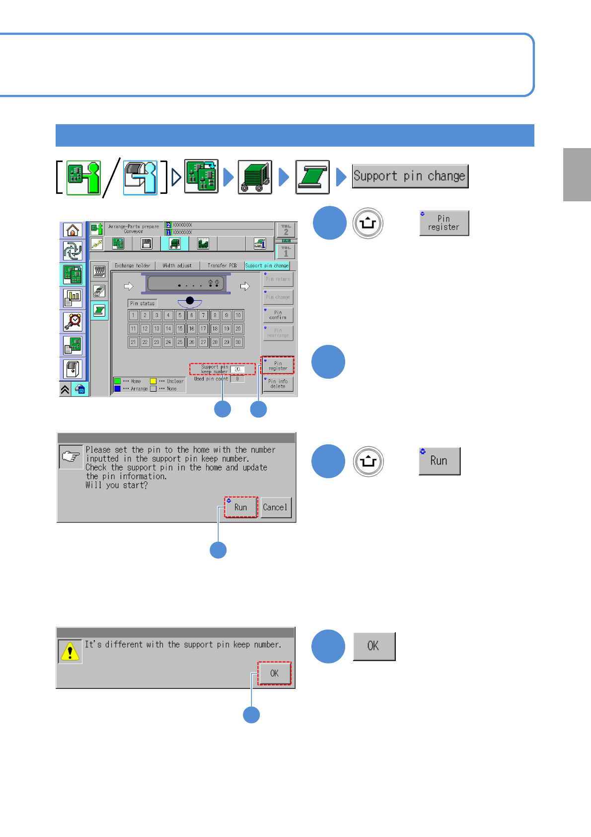 NPM- TT2 EJM1EE-MB-02 O-04 Installing suppor t pins (f or automa tic change) 3 Operating procedure 2-5-7 2-5-7 -5 Individu- al prepara- tion Installing the support pin (for automatic change) 3 ● Then, check the numb er o…