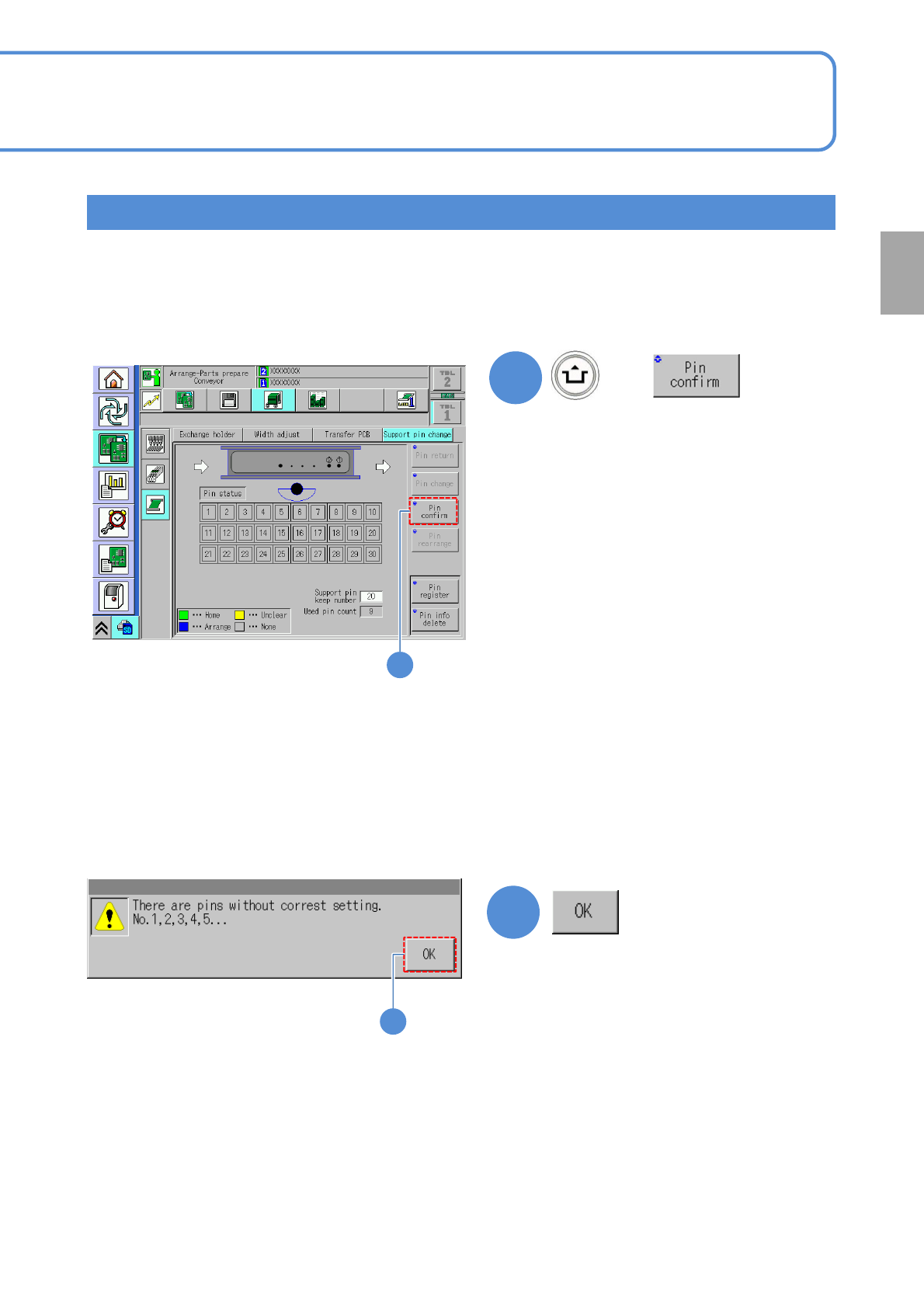 NPM- TT2 EJM1EE-MB-02 O-04 Installing suppor t pins (f or automa tic change) 4 Operating procedure 2-5-7 2-5-7 -7 Individu- al prepara- tion Checking the support pin arrangement position 1 + Download the production data …