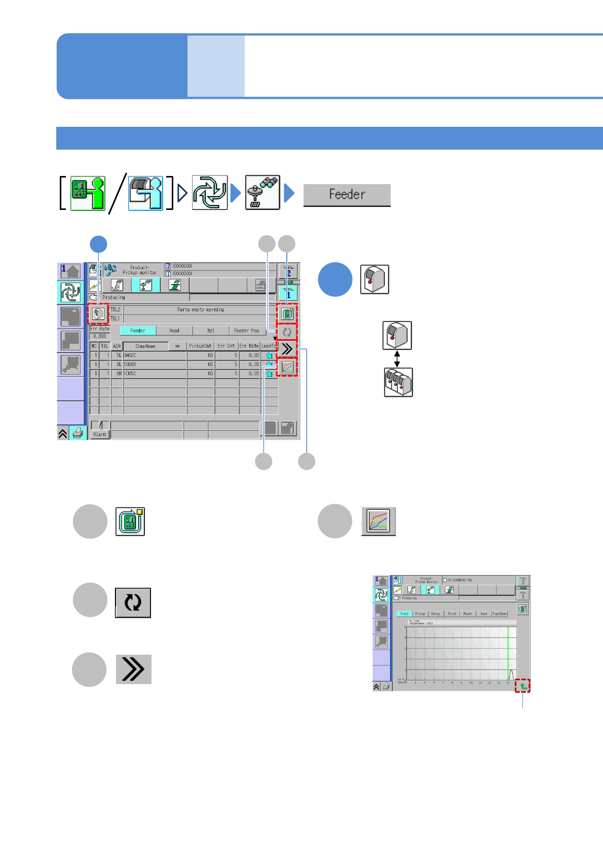 NPM- TT2 EJM1EE-MB-03 O-02 3-2-1 -7 Feeder pickup condition 1 Operating procedure 3-2-1 Choose either by machine or by line : By machine : By line Produc- tion informa- tion A Stop production after the produce d current …