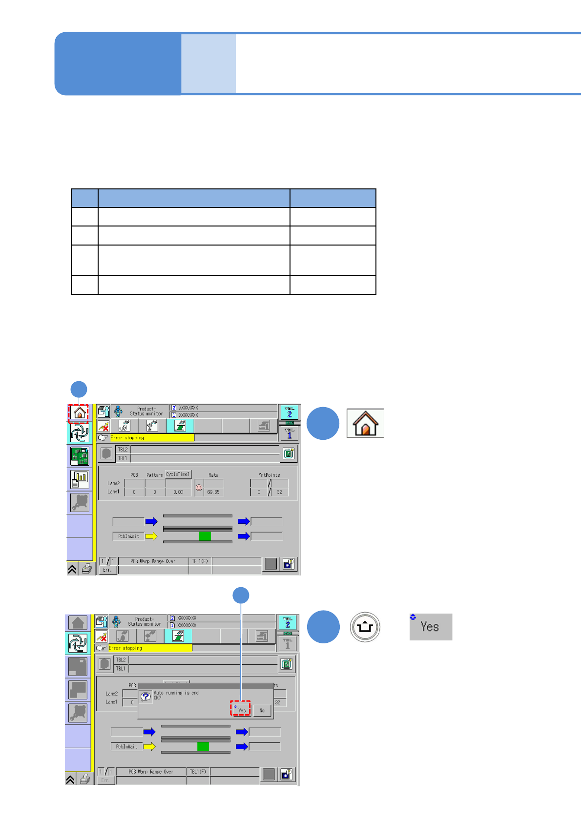 NPM- TT2 EJM1EE-MB -03O-02 3-2-1 1 -2 2 (Detailed error information is displayed) A B Returns to the previous screen. C Choose the display type. Pickup information per nozzle ( → P.3-2-1 -12 ) Production A B C
