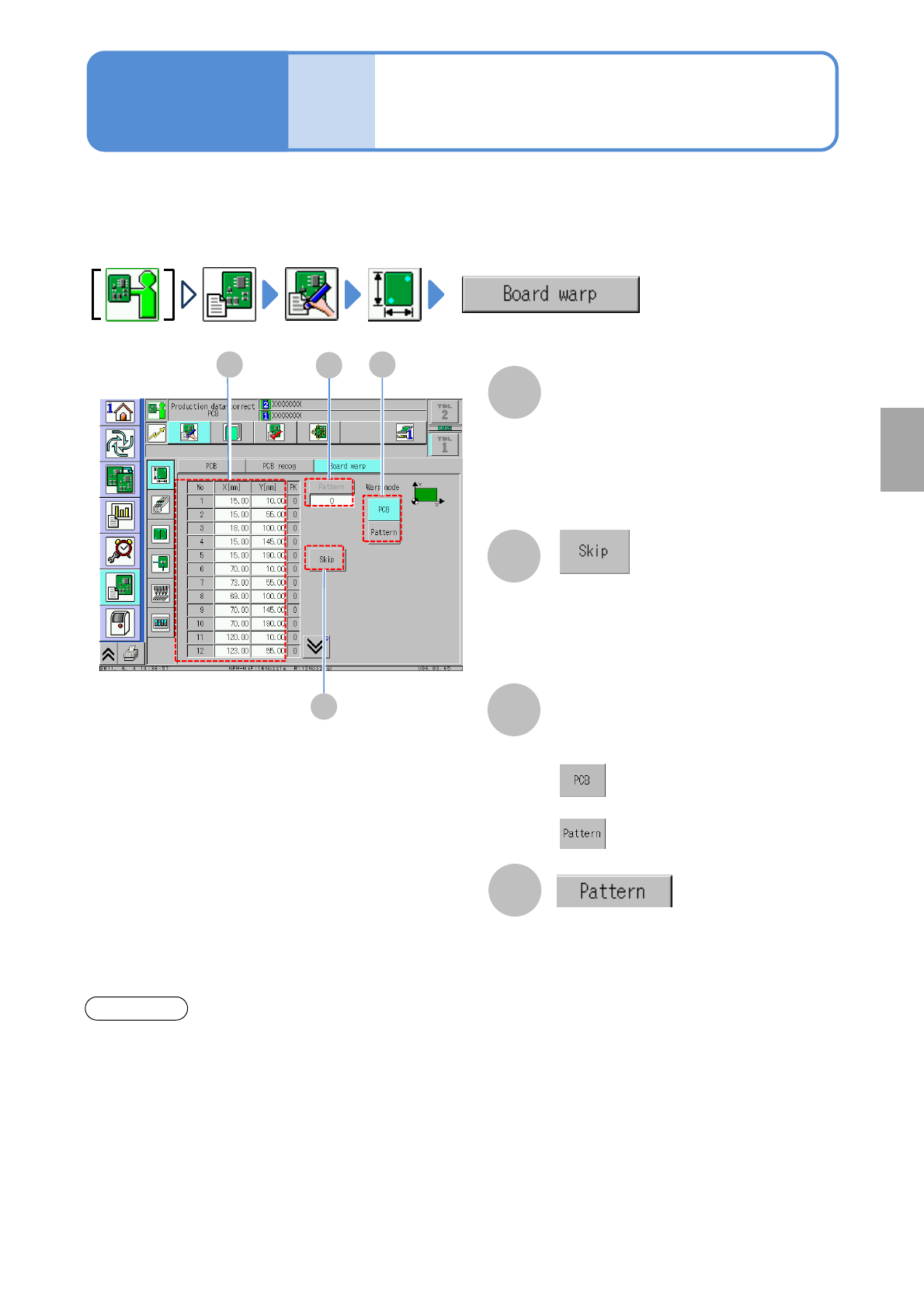 Describes how to check and edit the PCB warpage measurement point data.
