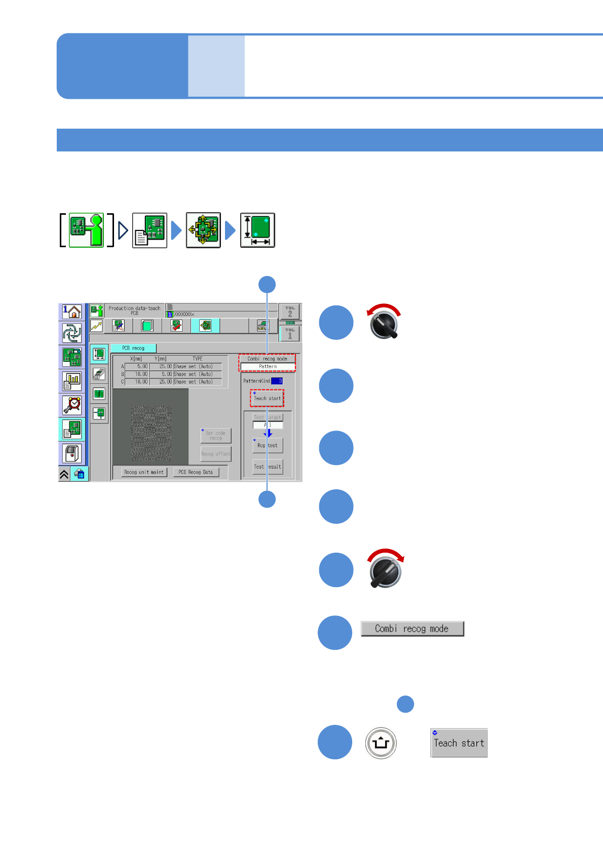 ●Before the PCB recognition teach, check in NPM-DGS that the soft switch ‘PCBRecog’ (P.4-1-14) of the