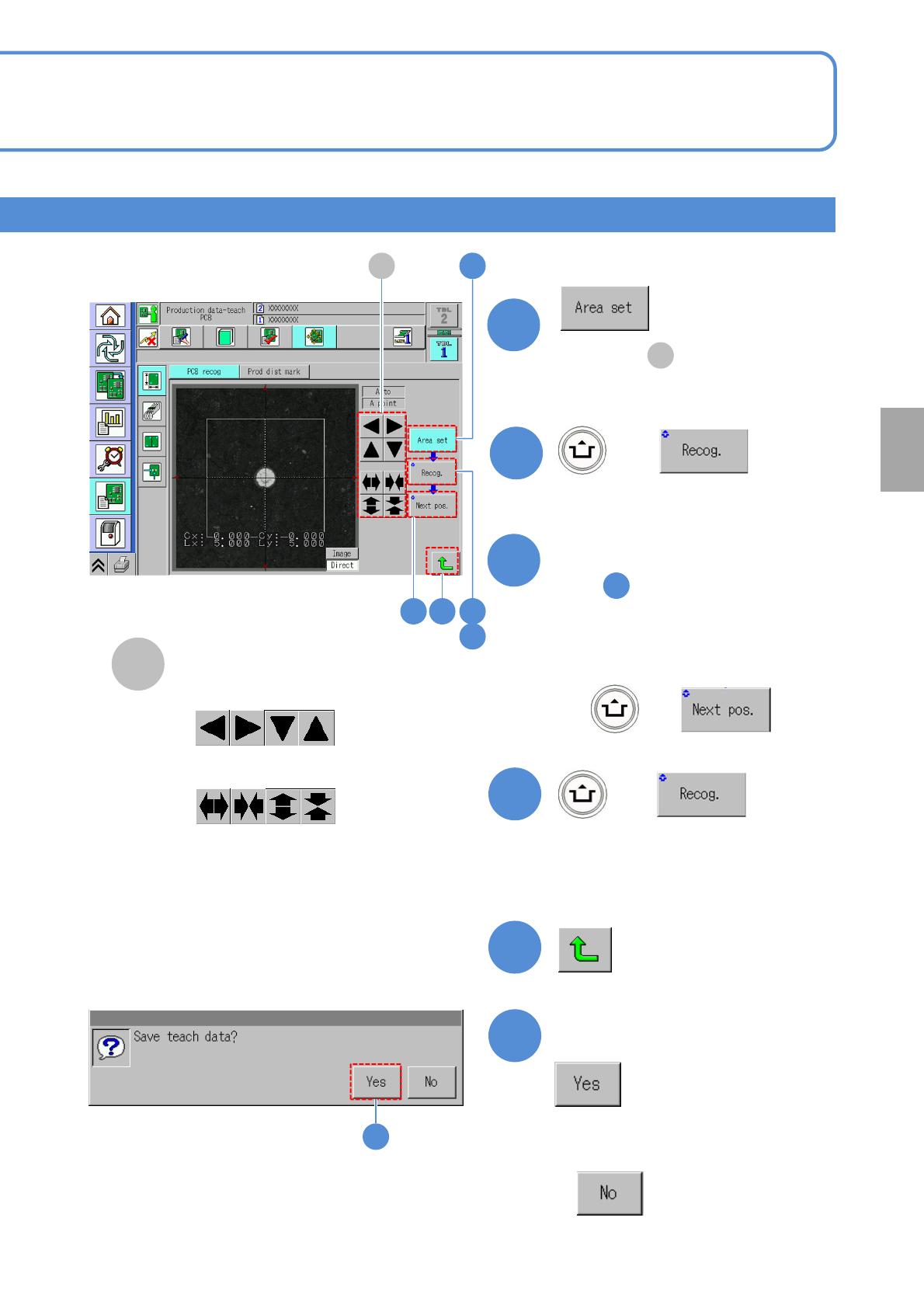 ●Before the PCB recognition teach, check in NPM-DGS that the soft switch ‘PCBRecog’ (P.4-1-14) of the