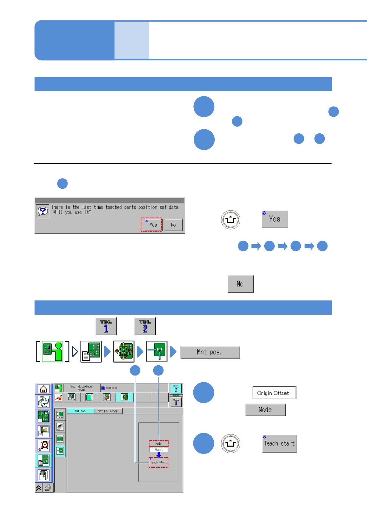 NPM- TT2 EJM1EE-MB -04O-03 3 Obtain origin offset by the following steps A 4 Confirm origin offset A Origin offset (Origin offset obtained by teach is displayed) Setting change 4-2-9 -21 Measurement position [Button name…