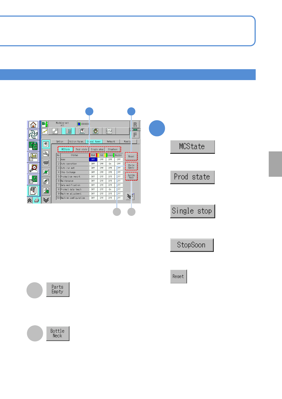 The signal tower and buzzer settings are divided into four categories; [MCState], [Prod state], [Single stop]