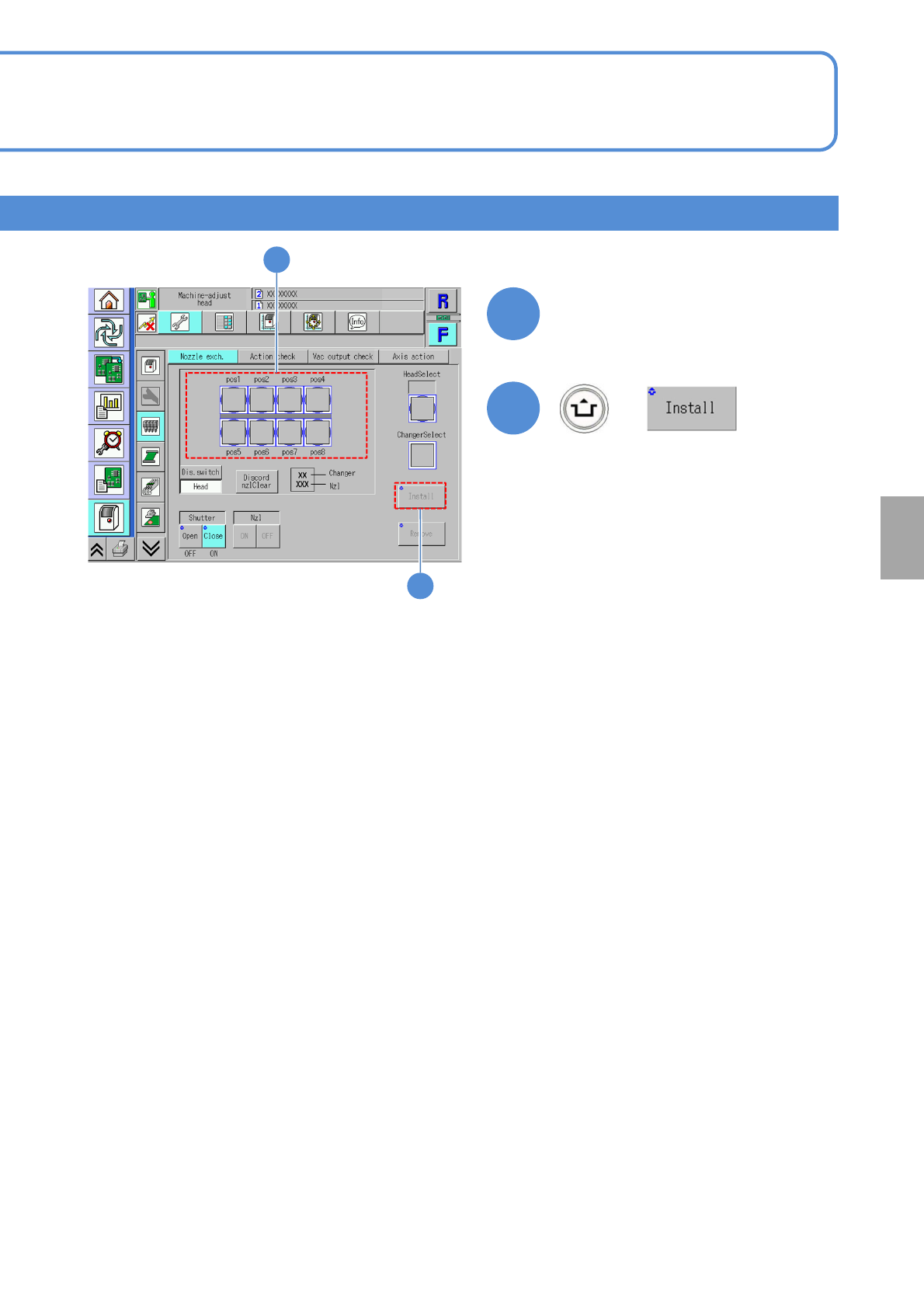 Install nozzles in the nozzle changer to the placement head.
