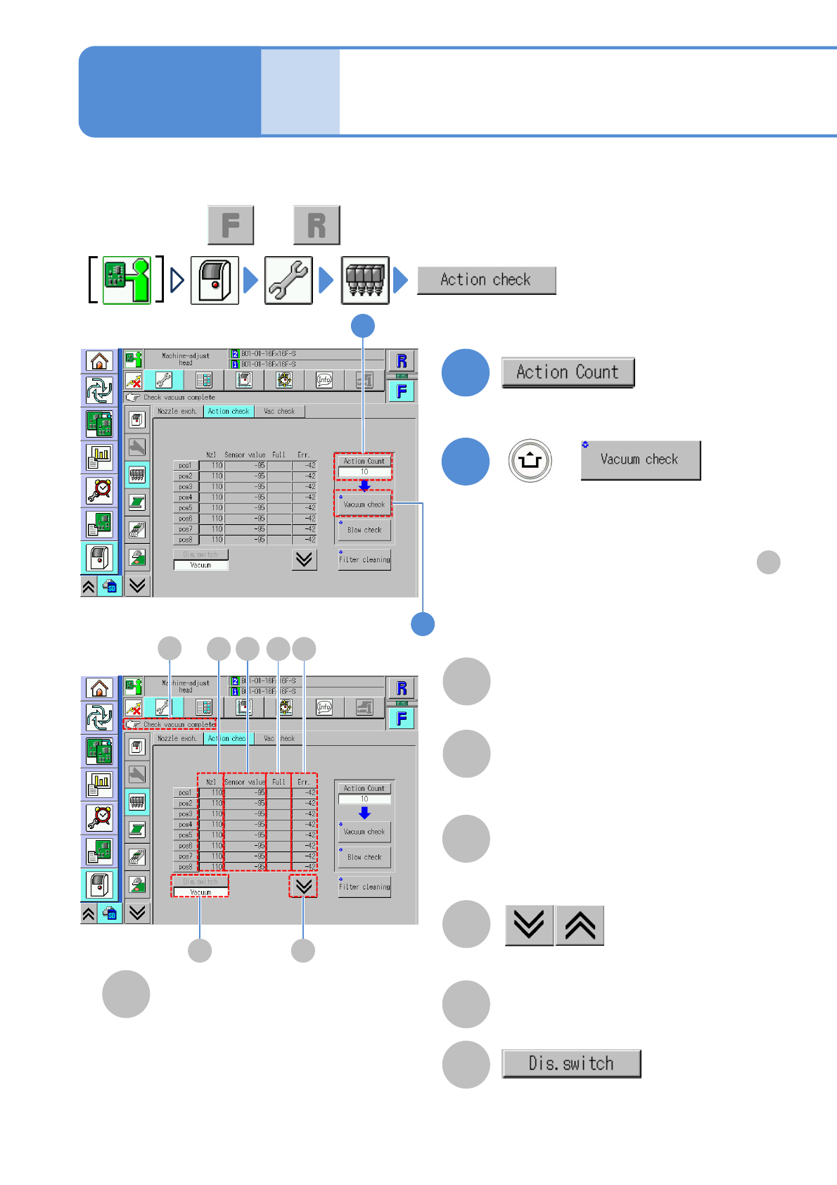 You can change the valve and check whether each of the vacuum pumps and air blows operates normal