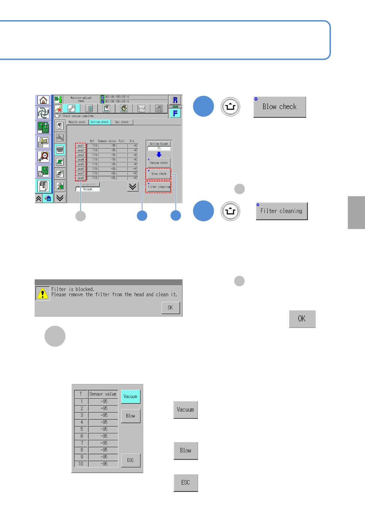 NPM- TT2 EJM1E E-MB-05O-05 5-2-6 -2 + System administration 4 3 3 4 H ■ If air blow and the vacuum pressure measurement r esults in e rror Confirm the message (The background of the measured value of the correspondin g n…