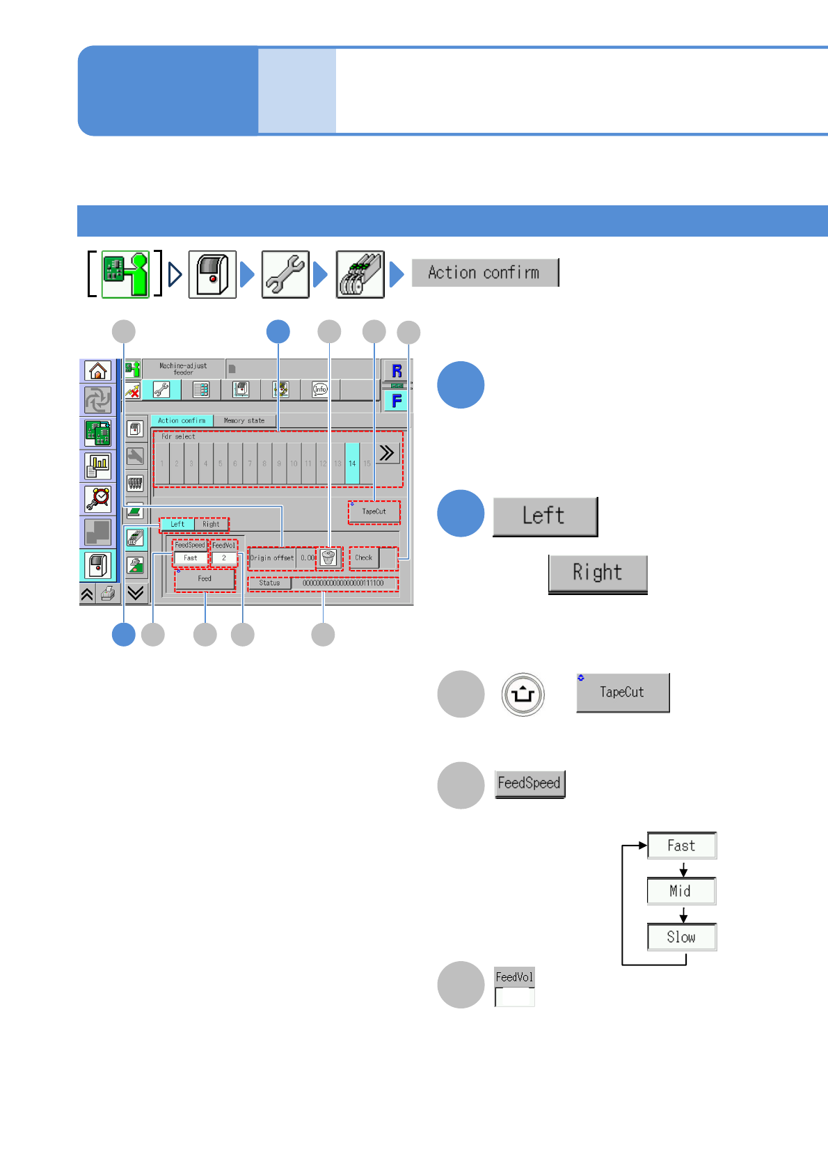 NPM- TT2 EJM1E E-MB-05O-05 Unit adjust- ment 5-2-12 -1 A H G F 1 2 A 1 Checking feeder action You can confirm intelligent feeder action and memory information. F eeder infor ma tion ch e ck 1 (intelligent feeder) + B C D…