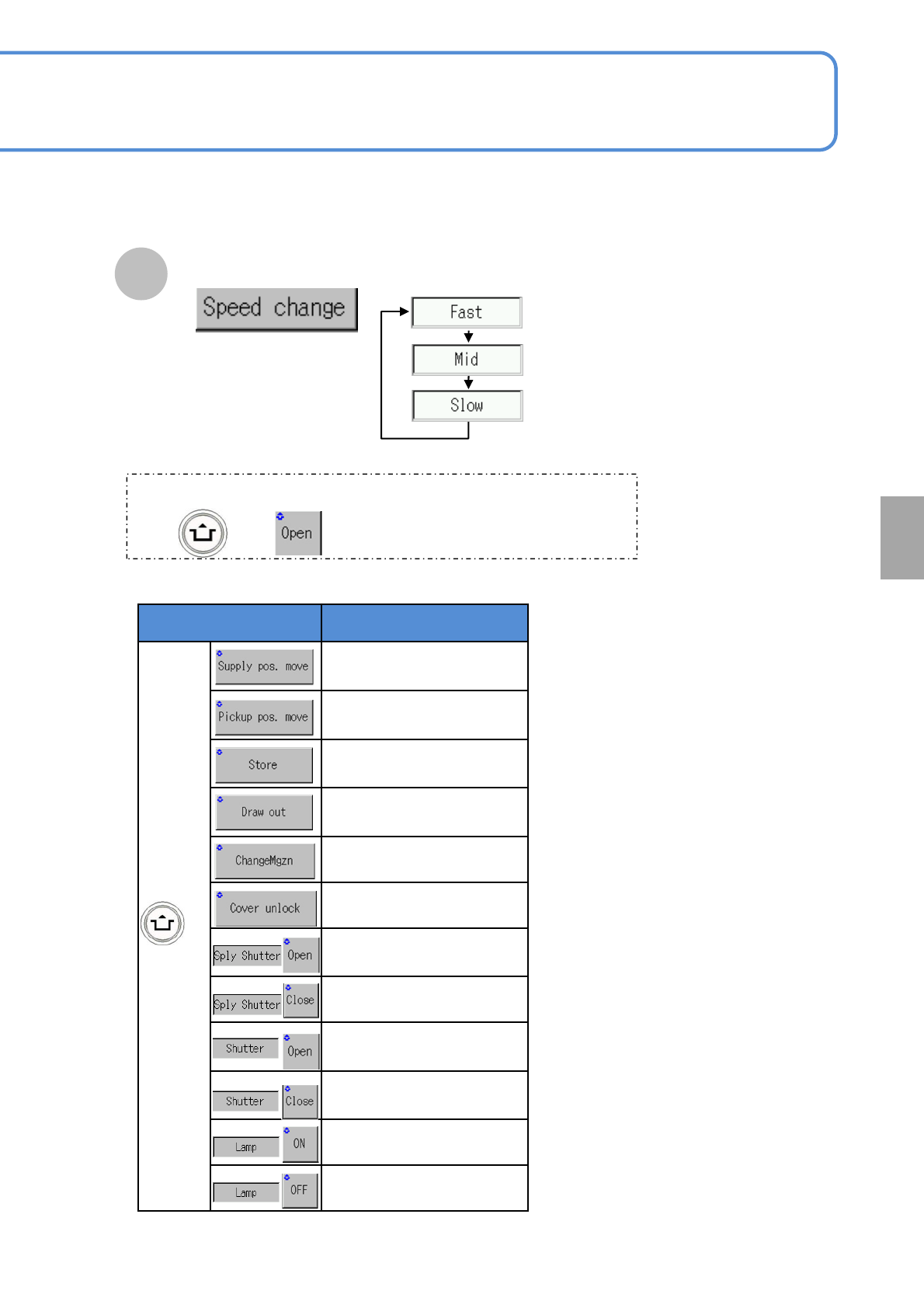 Opens the supply shutter.