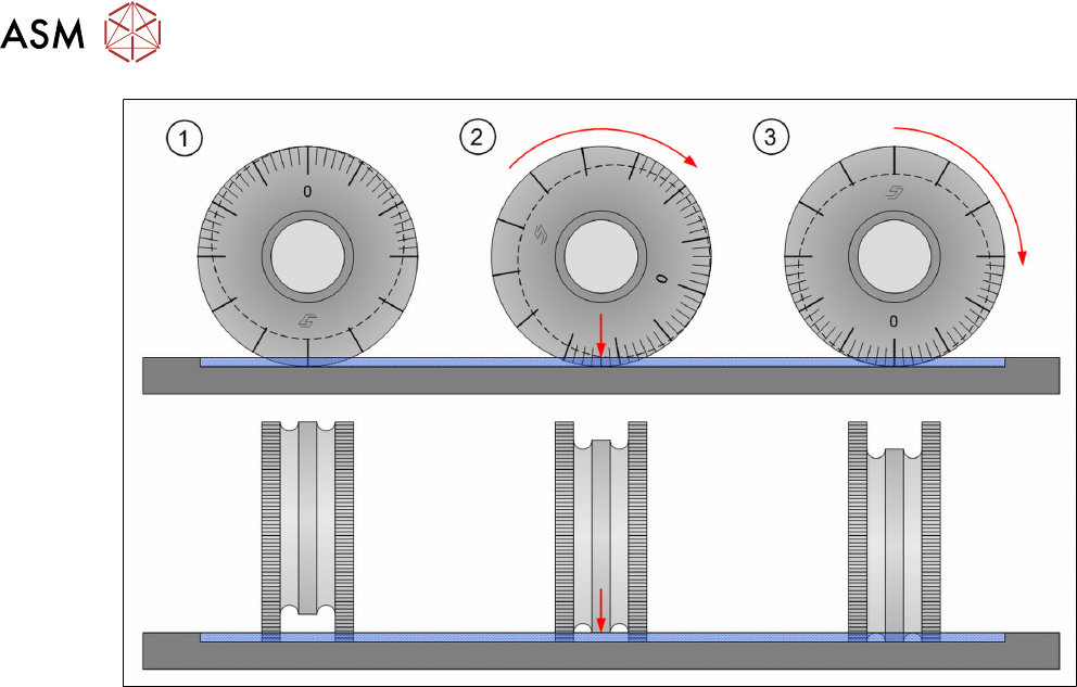 ► (2) Apply slight pressure and roll the measuring device in one direction to the zero value (3).
