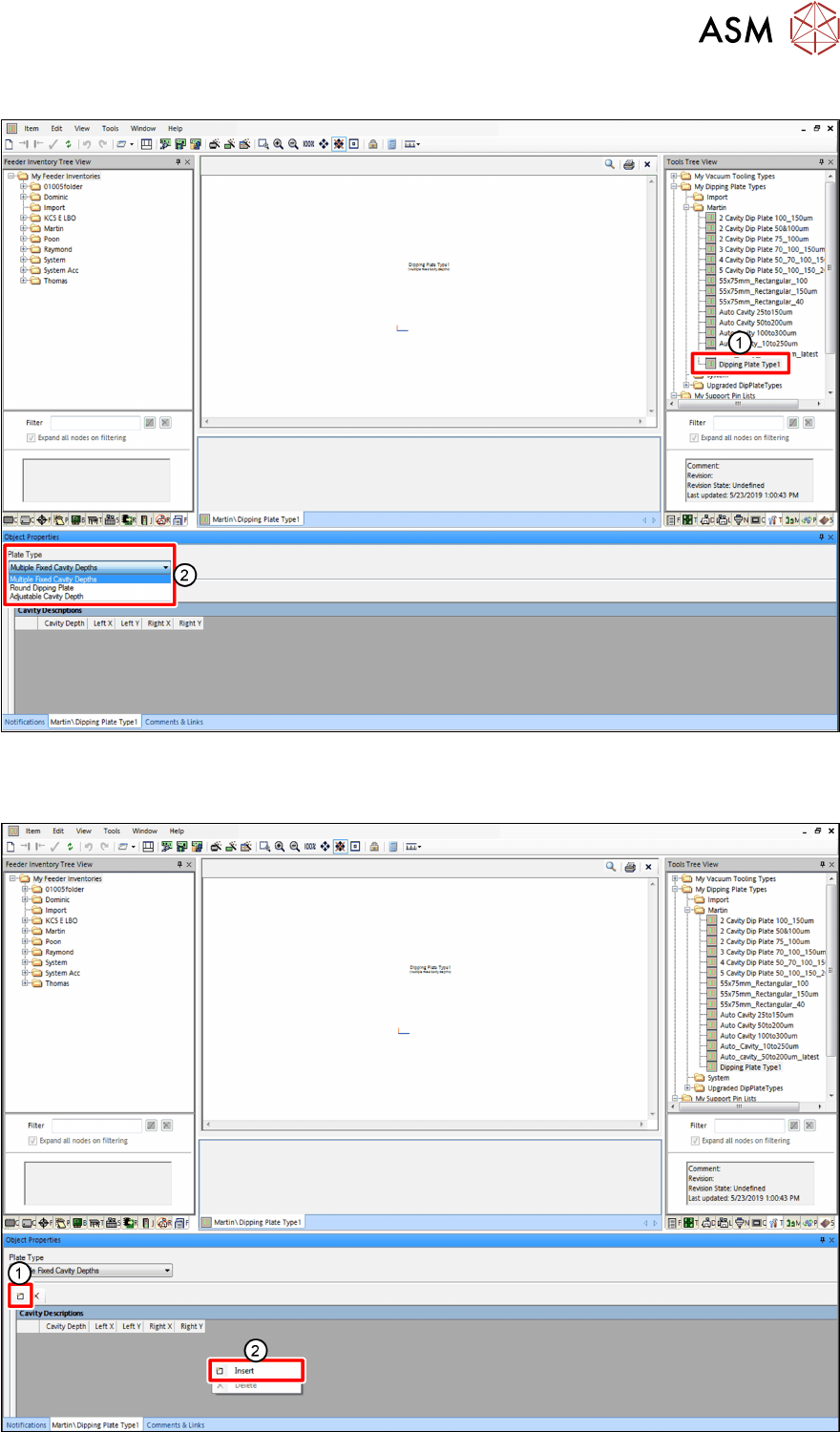 4 Operation 4.1 Settings in SIPLACE Pro 42 User Manual SIPLACE Linear Dipping Unit 2 X 05/2020 ► Click on the Insert icon (1) or, alternatively, right-click on the gray area and select Insert from the menu (2) . ► Ente…