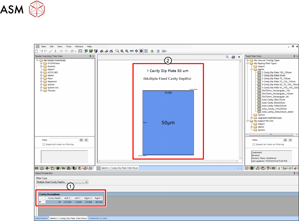 ► In the Tools Tree View, select the dipping plate to be defined(1).