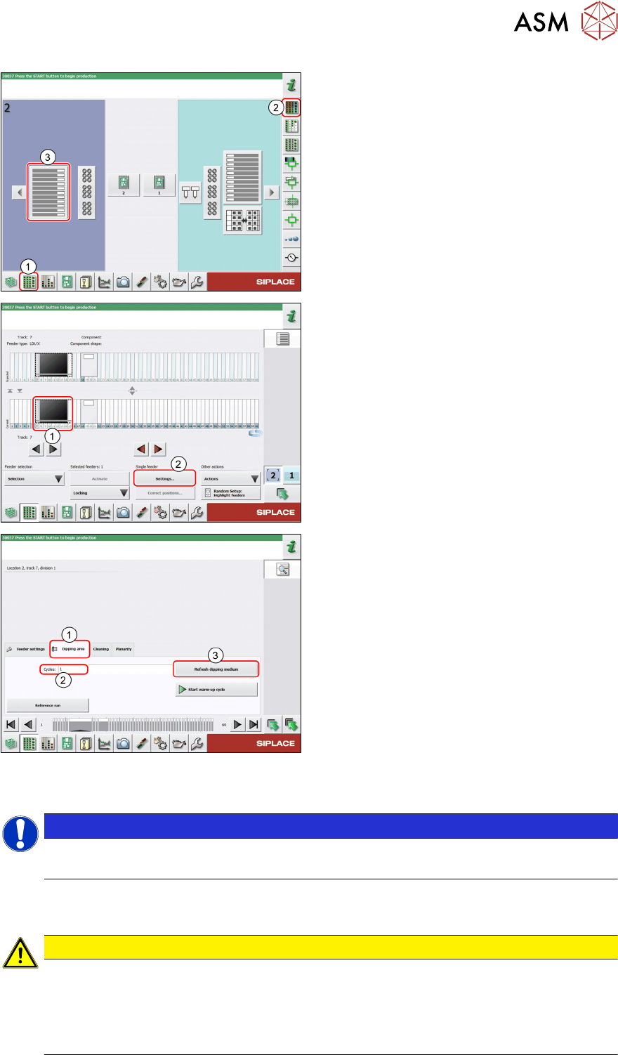 4 Operation 4.16 Monitoring production 78 User Manual SIPLACE Linear Dipping Unit 2 X 05/2020 4.16 Monitoring production NOTICE Target group: standard operator The procedure described is a regular task that can be carrie…