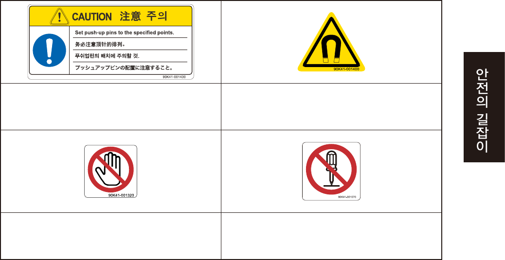 소정의위치에서벗어나지않도록푸쉬업핀의배치에주의할것 . 강자계에관한주의사항을반드시이해할것 .