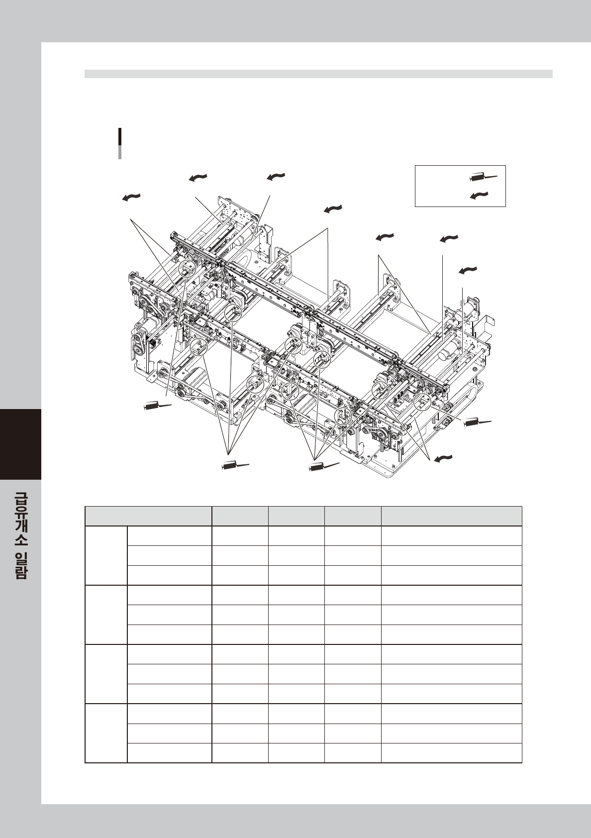 5-6 5 2 .3 W 축 (U 축 ) 2.3 . 1 Y SM20R 듀 얼 스테이 지 사양 W4축 가이드부 W2축 볼스크류부 W4축 6각 스플라인 W1축 볼스크류부 W4축 볼스크류부 W3축 볼스크류부 W1축 6각 스플라인 W1축 가이드부 W2축 가이드부 W3축 가이드부 W2축 6각 스플라인 W3축 6각 스플라인 W축(U축)의 급유개소 YSM20R 듀얼 스테이지 사양 구리스 건 : 손으로 도포…