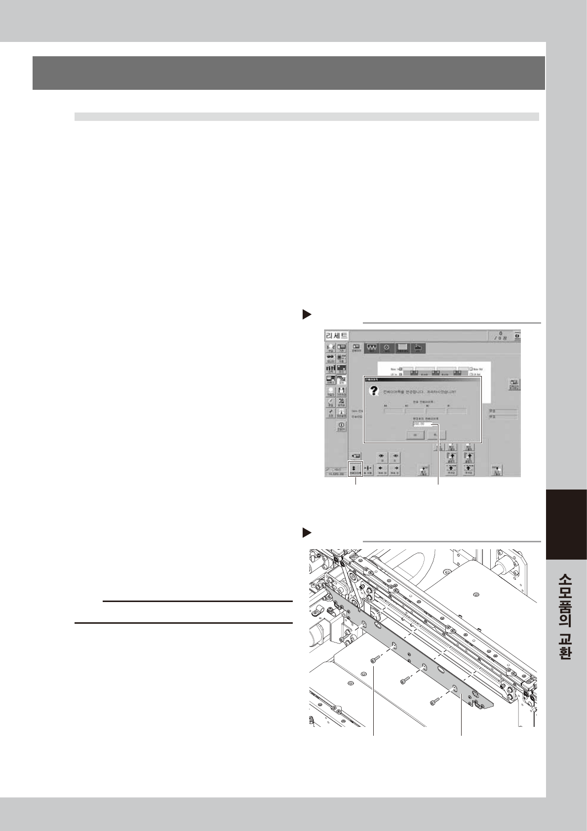 심하게 일어나 있을 경우에는 , 컨베이어 벨트를 교환할 필요가 있습니다. 다음의 순서대로 교환해 주십시오 .