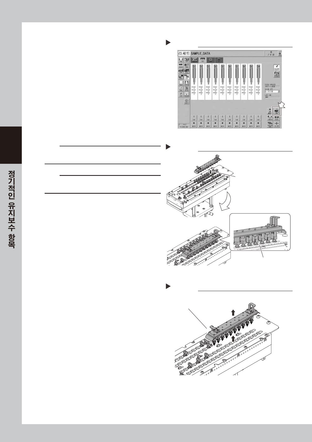 3-8 3 █ AN C 노즐 탈장 착 툴 의 노즐 탈 착방 법 1 노즐 스테 이션의 셔터를 오픈합 니다 . [ 장치 ] - 「헤 드 」화 면의 [ 노즐 ST N 셔터 ] 버 튼을 눌러서 노 즐 스테 이션 의 셔터 를 열어 주십 시 오 . 2 툴 을 노즐 스 테이션에 세팅합니 다 . e 1 . 비상정 지 버 튼을 누 르고 , 장 비 의 안전 커버 를 오픈합 니다 . 2. 탈착할 노 즐의 위 치…
