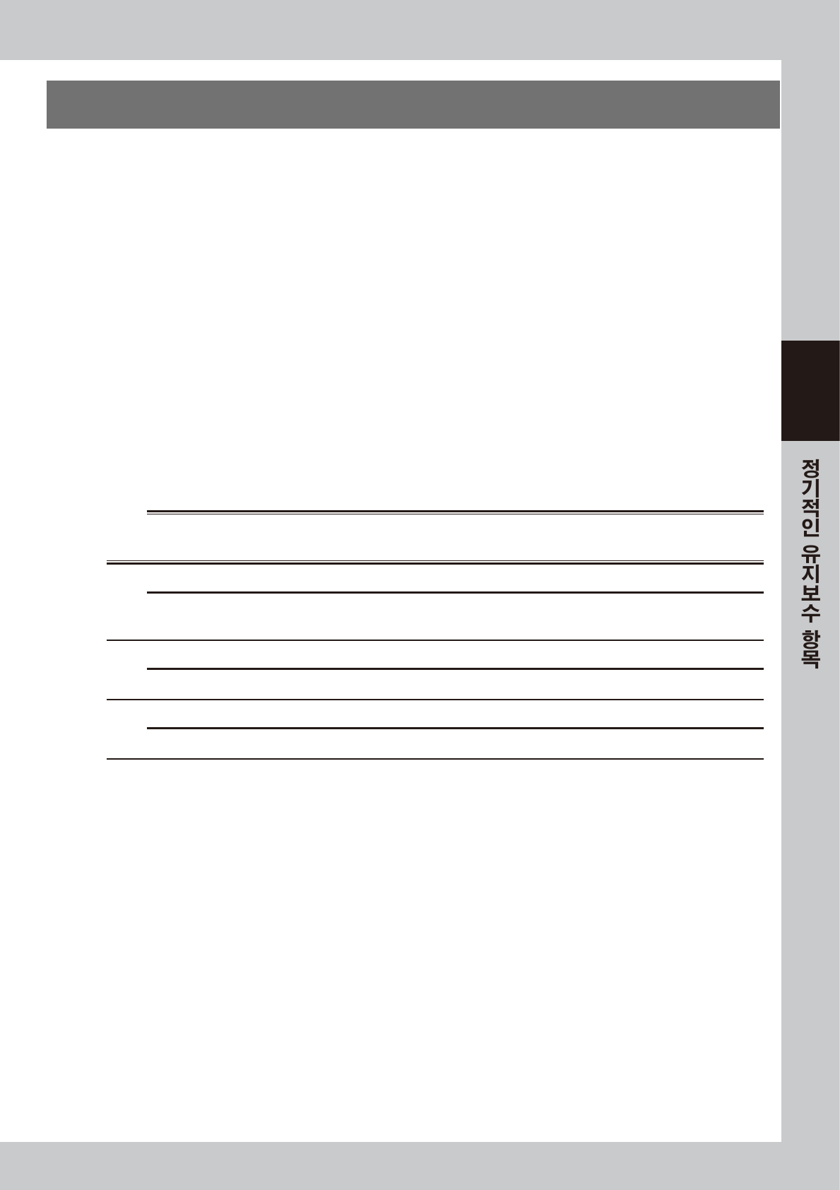 1. 칩 등이 끼이게 되면 볼스크류 및 가이드를 손상시키는 원인이 되므로 , 부착되어 있을 경우는 구리스 채 닦아내거나