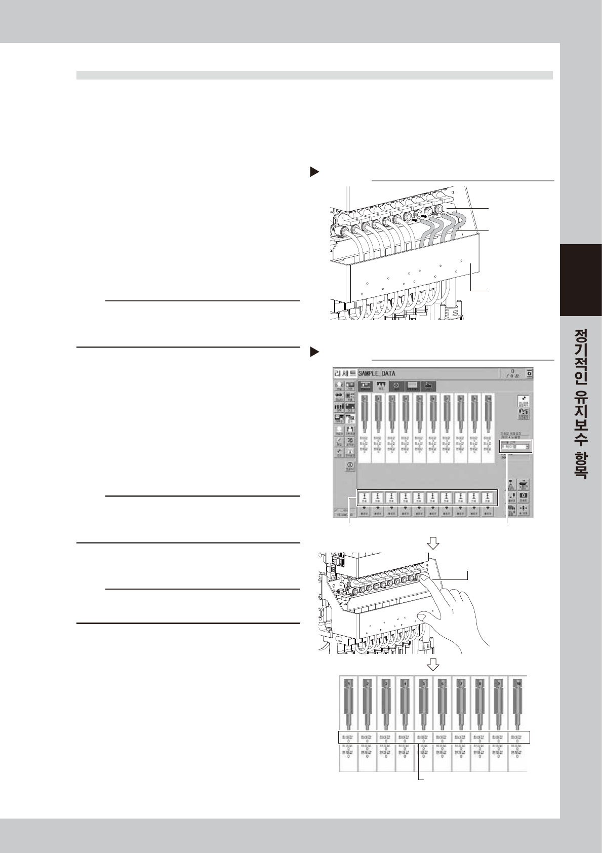제3장「6.1 이젝터용 BIT 의 교환」또는 , 제 6 장「3.1 HM 헤드의 밸브 교환」 ,「3.2 FM 헤드의 밸브 교환」을