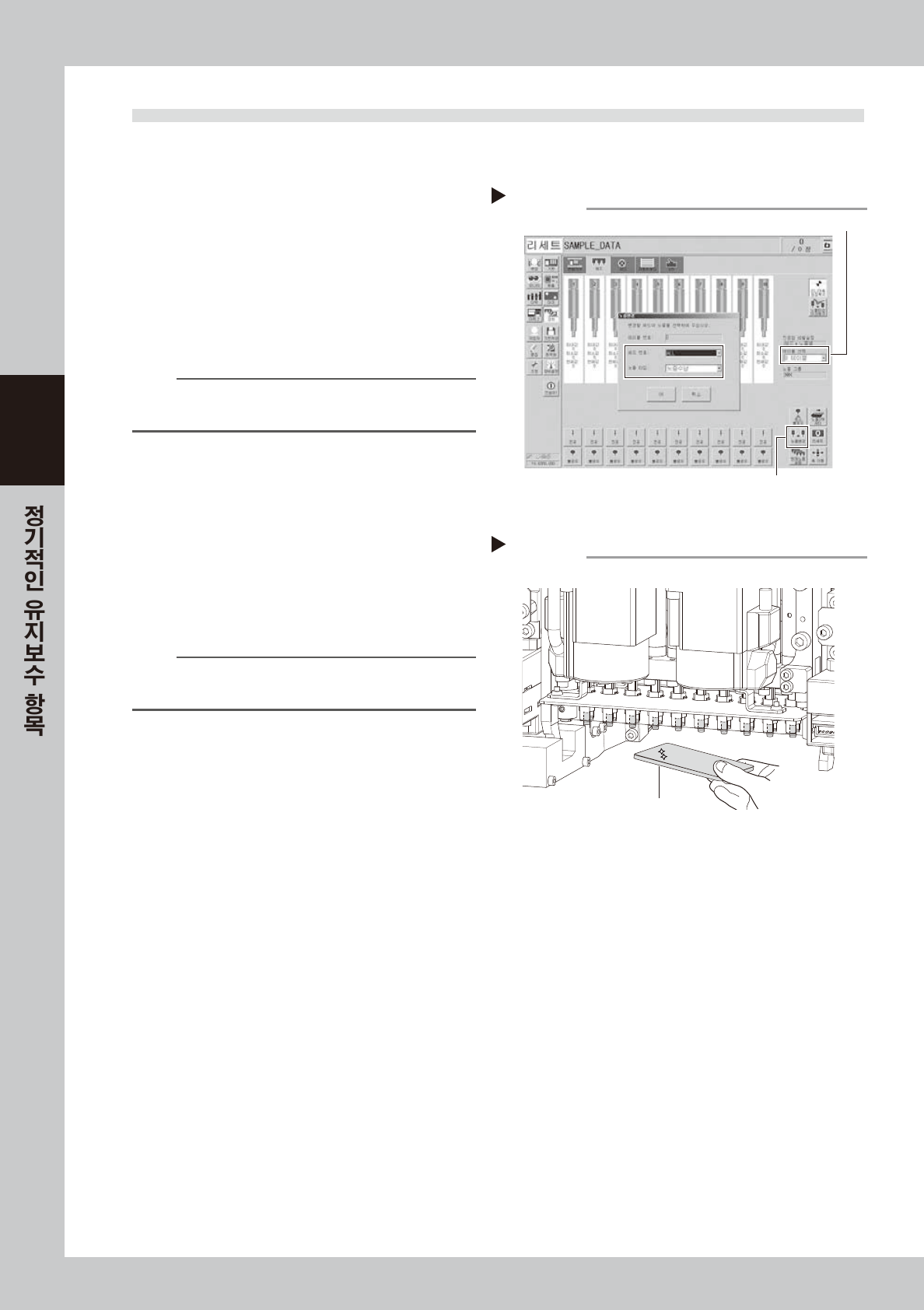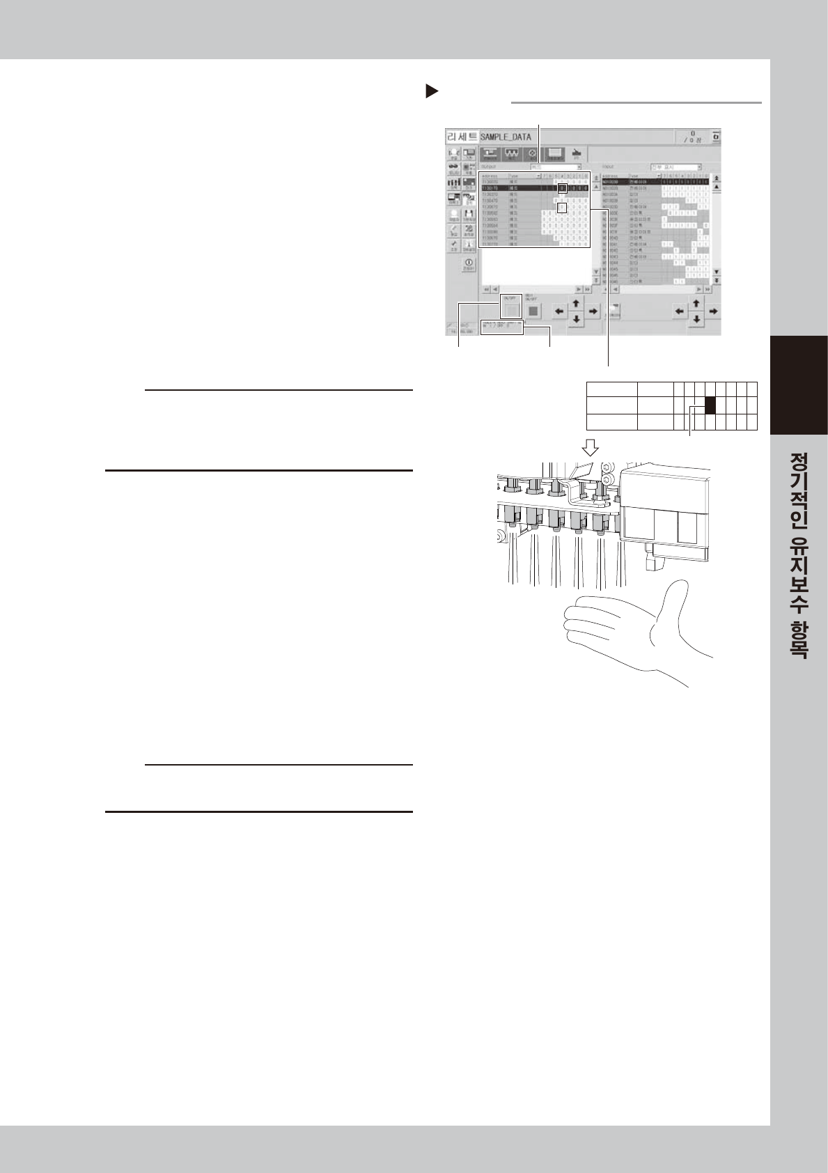 3-24 3 3 . 4 샤프 트 선단 부의 확 인 샤 프트 의 선 단 부는 장 기 간 사용 함 으로 인 해 더 러 워 질 경 우 가 있 으므로 , 정 기 적 으로 선 단 부를 확 인 할 필 요가 있 습 니 다 . 여 기 에 서 는 , HM 헤 드 유 닛 을 예 로 들 어 서 샤 프트 선 단 부 의 확 인 방 법 에 대 해 서 설 명 합 니 다 . 1 노즐 을 노즐 스 테이션에 수 납합 니다 …