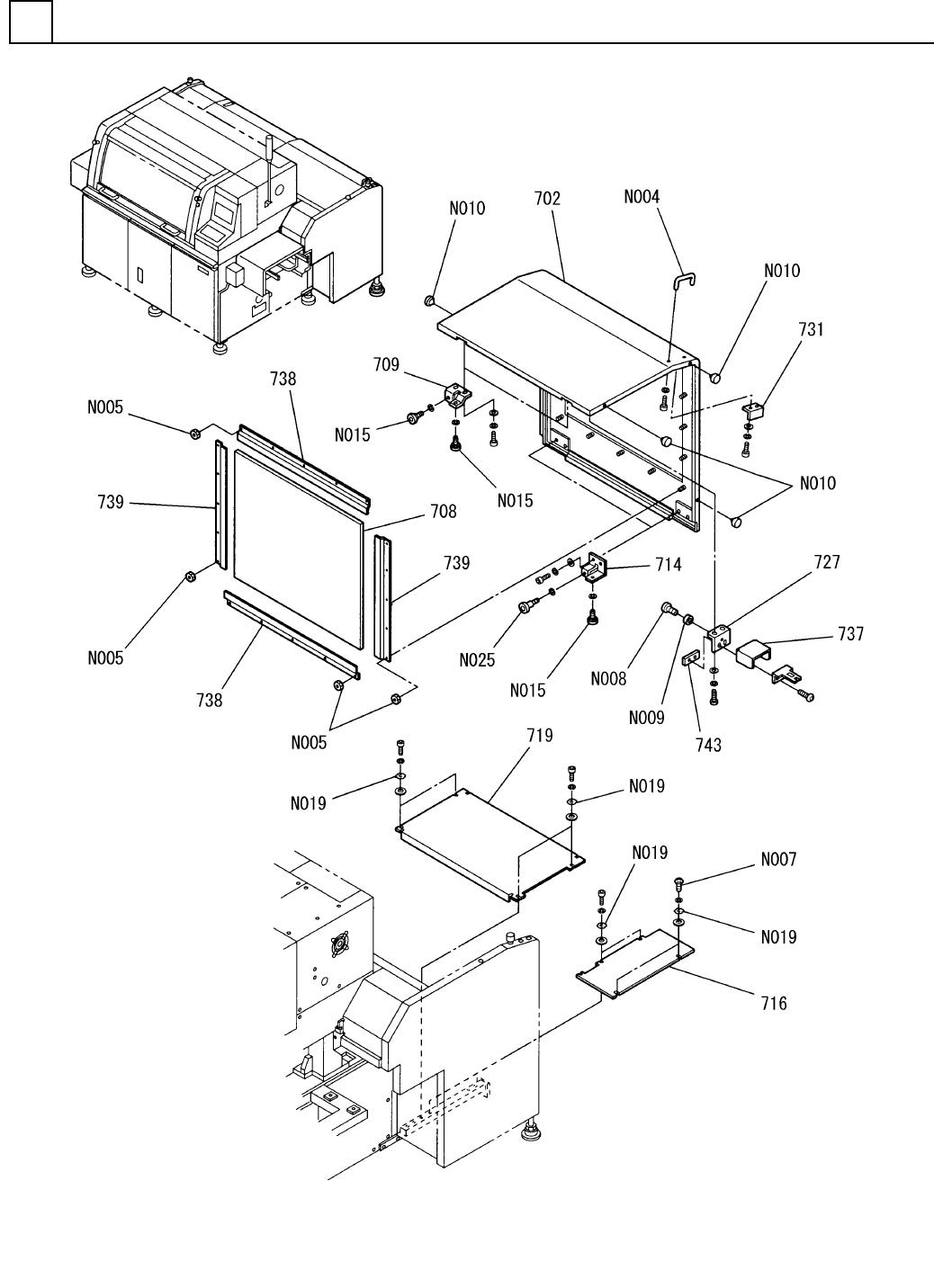 PART NAME REMARKS Q'TY 2 カバー部(Z軸カバー部5) COVER SECT. (Z-AXIS COVER SECT.-5) イラスト No. REF No. PART No. 部 品 品 番 個数 備 考 R 1 R 2 1 702 108710230403 DOOR(R) ドア(R) 1 708 1087102312 COVER(DOOR) カバー(ドア) 2 709 10871023130…